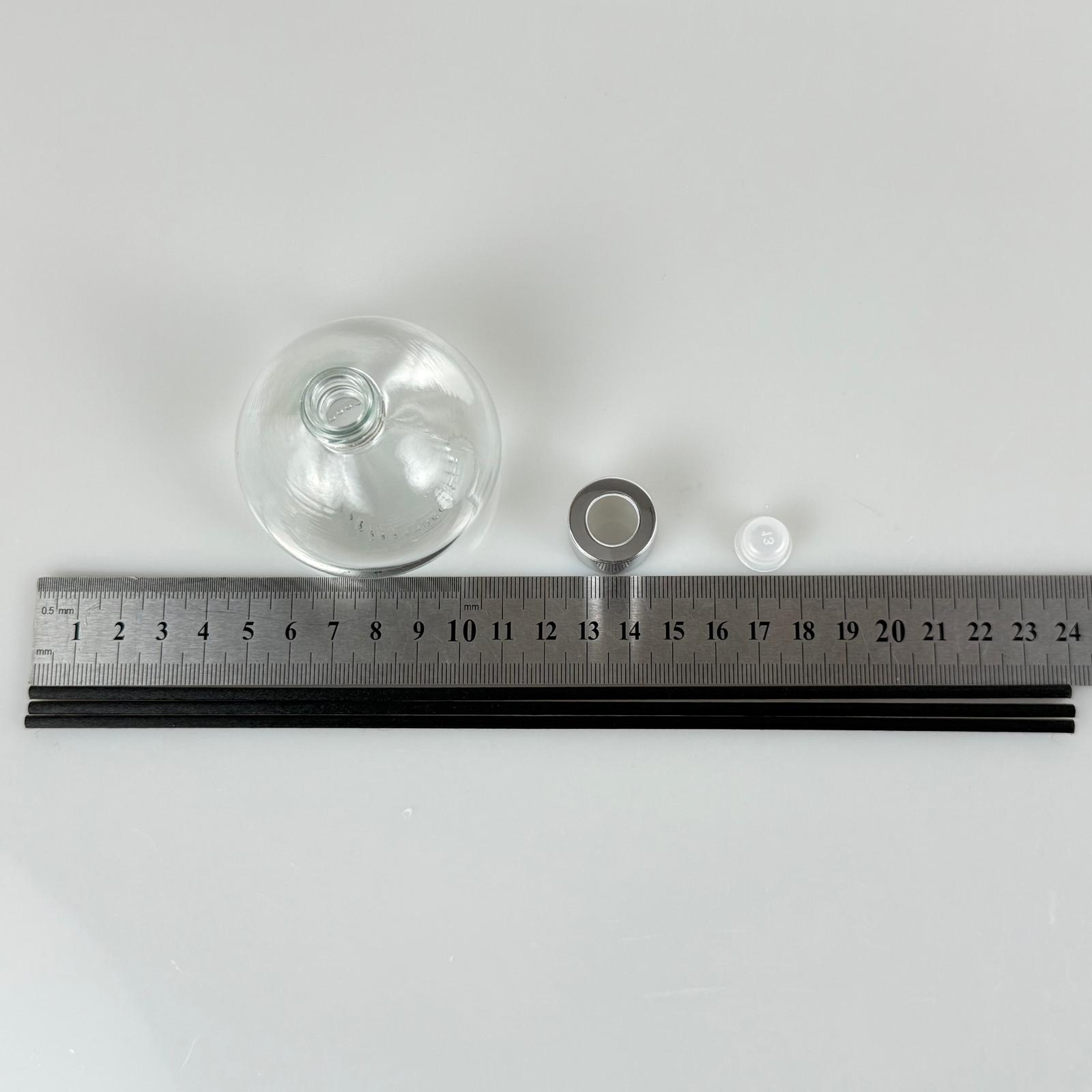 BASIK MODEL CAM BAMBU ODA KOKUSU ŞİŞESİ + METAL GÜMÜŞ KAPAK + TIPA + 3 ADET FİBER BAMBU ÇUBUK - 50 ML SET TAKIM - HEDİYELİK PROMOSYON DİFFUSER ŞİŞELERİ