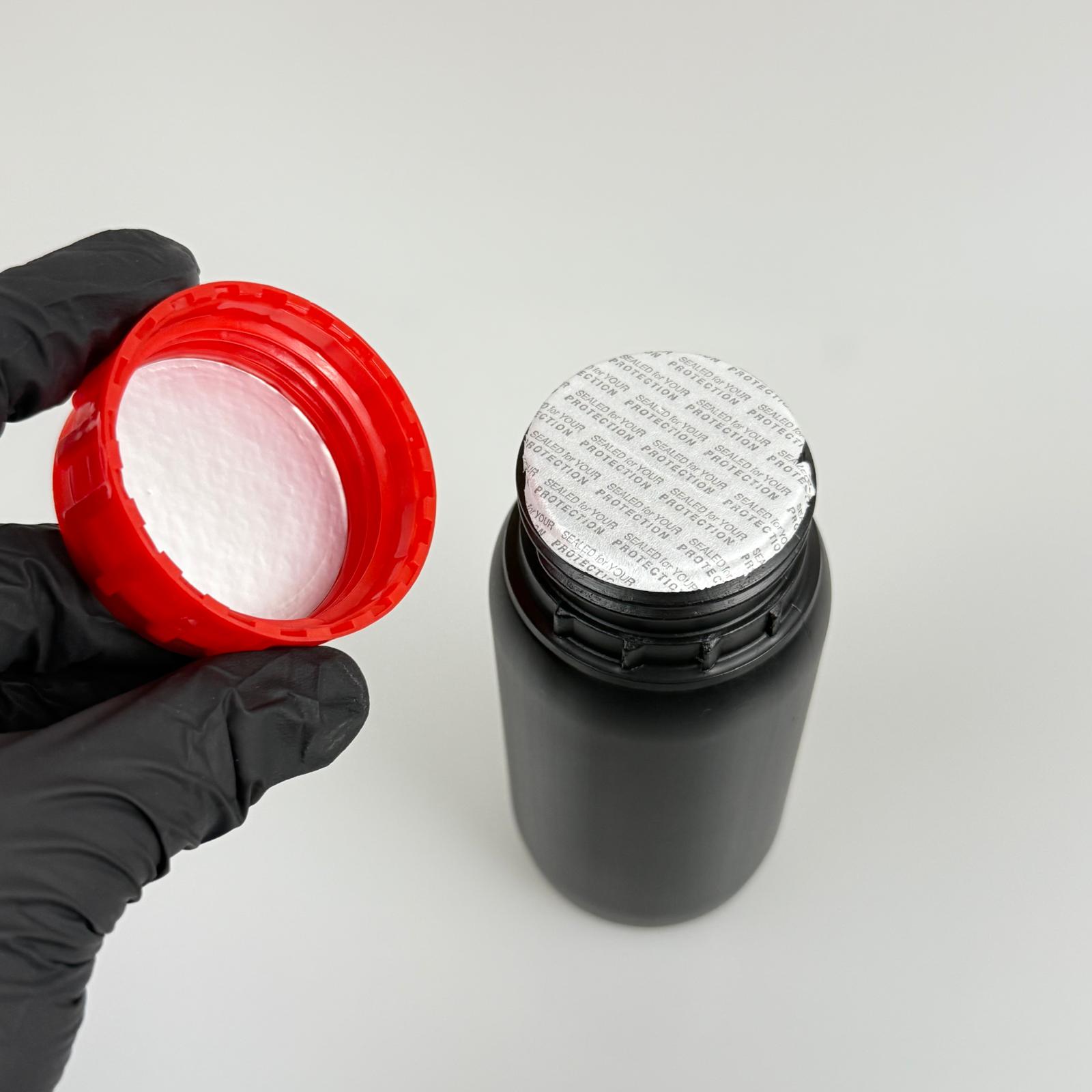 0,25 LT ZİRAİ İLAÇ BİDONU SİYAH + KIRMIZI ALÜMİNYUM FOLYOLU İNDİKSİYON CONTA SK50 KAPAK + KENDİNDEN YAPIŞKANLI KÖPÜK CONTALI - 250 CC PE POLİETİLEN TARIM BİDON