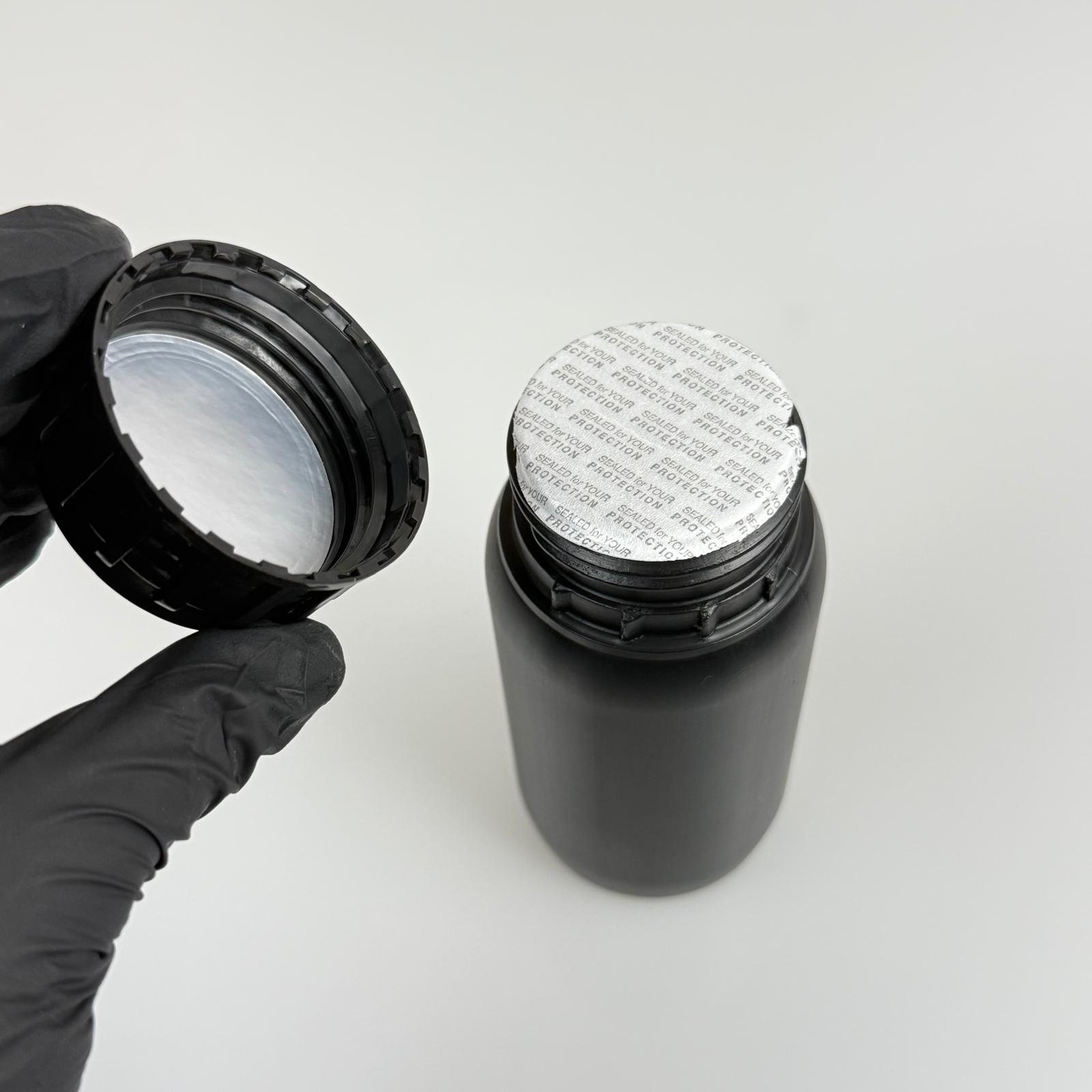 0,25 LT ZİRAİ İLAÇ BİDONU SİYAH + SİYAH ALÜMİNYUM FOLYOLU İNDİKSİYON CONTA SK50 KAPAK + KENDİNDEN YAPIŞKANLI KÖPÜK CONTALI - 250 CC PE POLİETİLEN TARIM BİDON