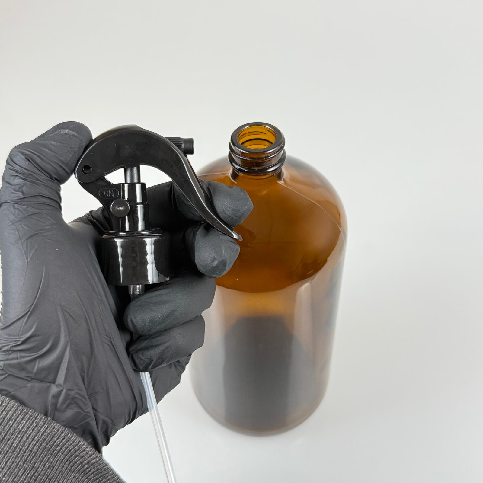 1 LT KAHVERENGİ ECZA ŞİŞESİ - SİYAH TRİGER (DUMAN PÜSKÜRTÜR) SPREYLİ - 1000 CC AMBER KÜT BOYUNLU CAM İLAÇ ŞİŞESİ - BOŞ ŞURUP ŞİŞELERİ