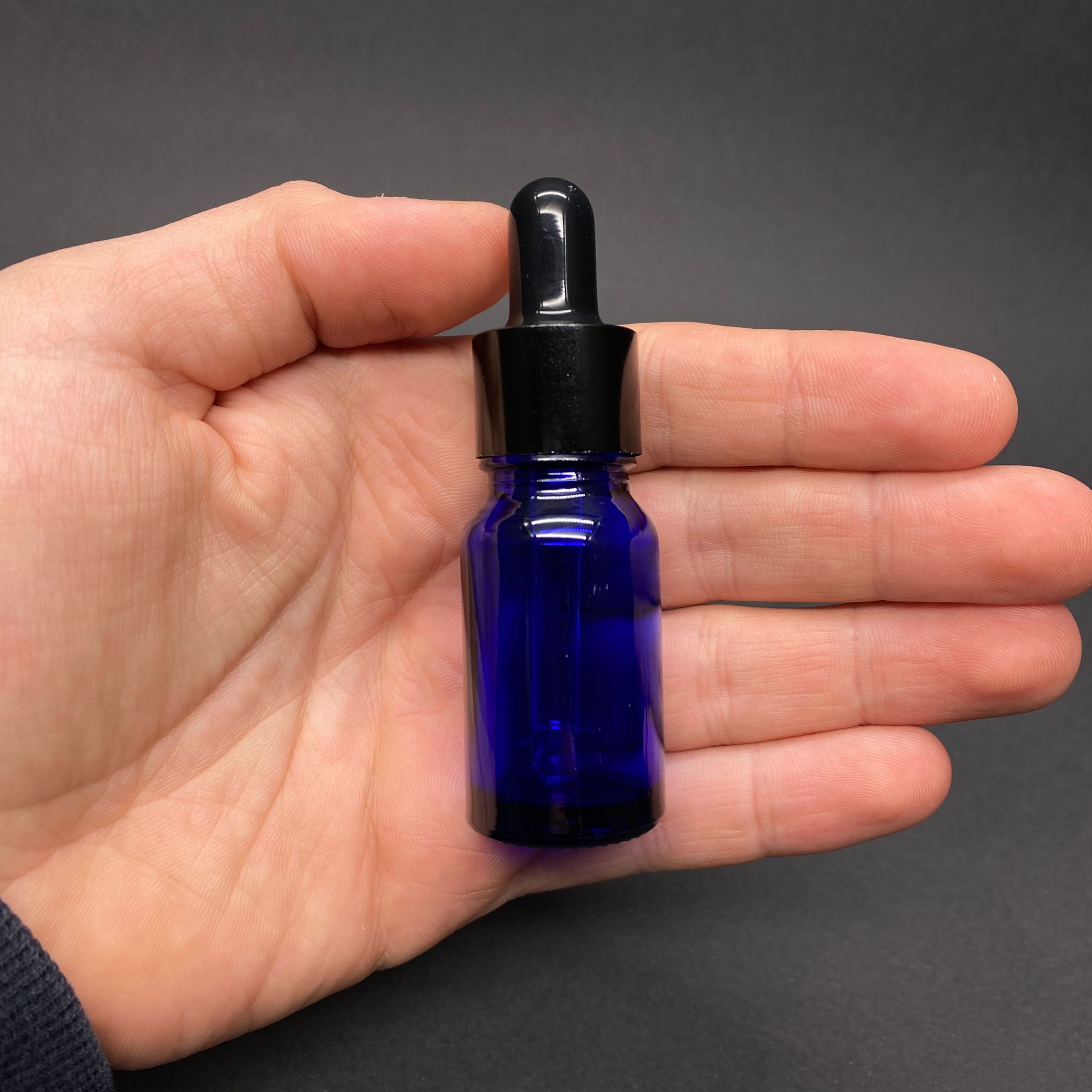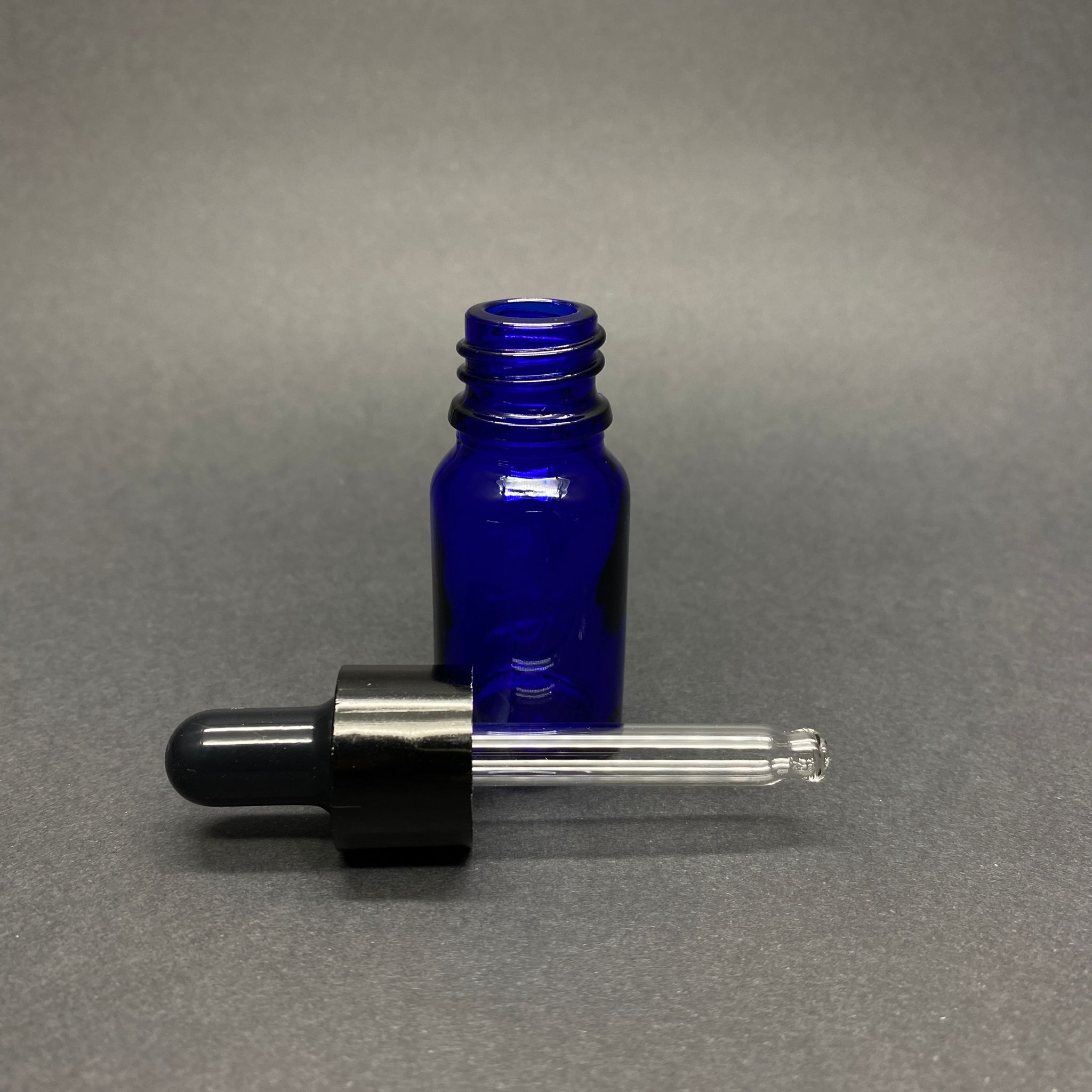 10 CC MAVİ CAM DAMLALIKLI ŞİŞE - SİYAH EMZİK - SİYAH METALİK KAPAK - 10 ML MAVİ CAM DAMLALIKLI ŞİŞE