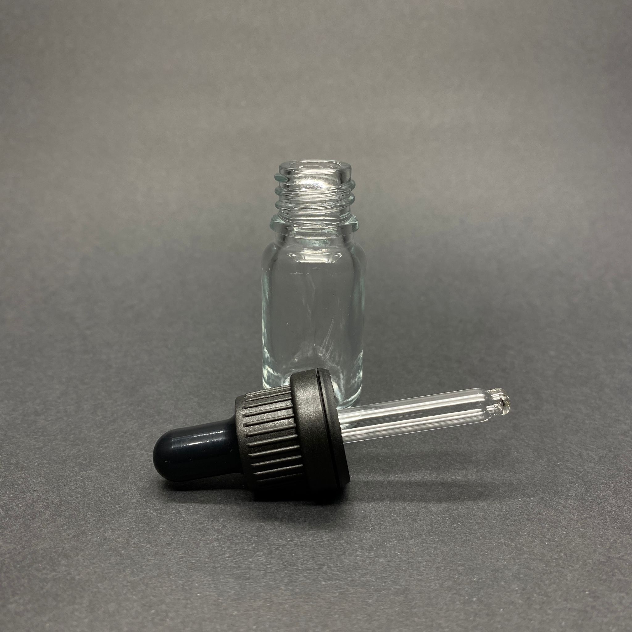 10 CC ŞEFFAF CAM DAMLALIKLI ŞİŞE - SİYAH EMZİK - SİYAH KİLİTLİ PLASTİK KAPAK - 10 ML SAYDAM CAM DAMLALIKLI ŞİŞE