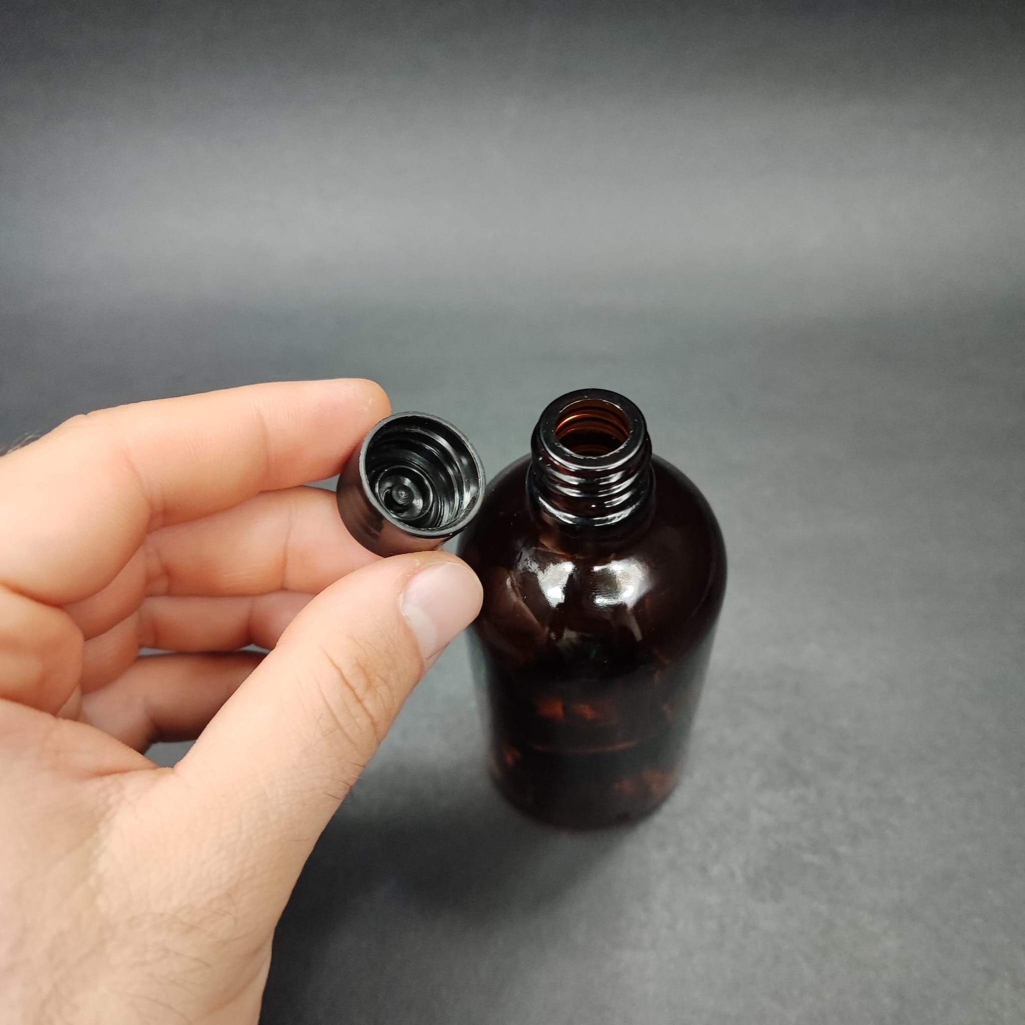 100 CC AMBER CAM ŞİŞE + KENDİNDEN CONTALI SIZDIRMAZ SİYAH KAPAK - 100 ML KAPAKLI KAHVERENGİ CAM ŞİŞE