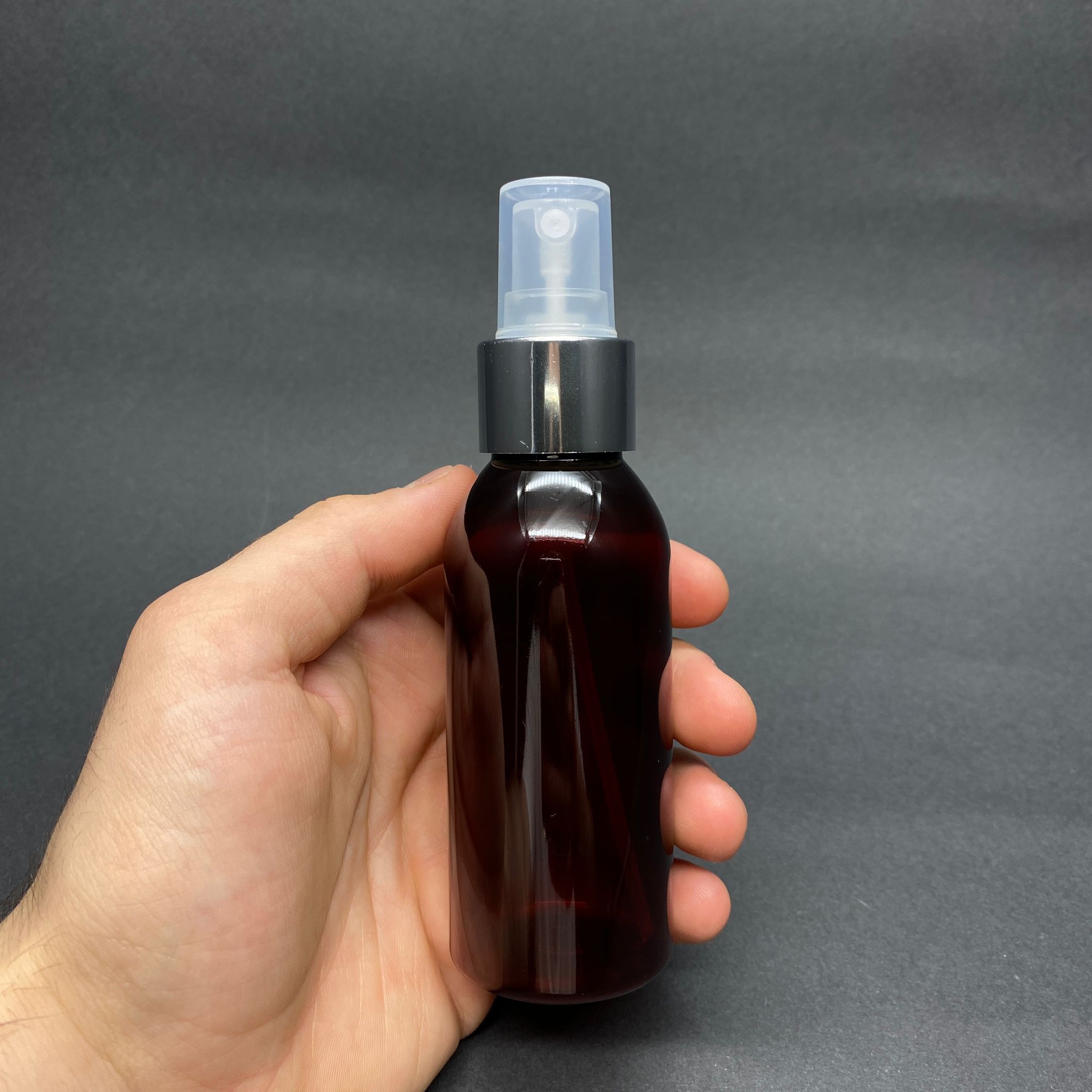 100 CC AMBER SERT PLASTİK ŞİŞE GÜMÜŞ SPREYLİ TAKIM - 100 ML KAHVERENGİ SPREYLİ PET ŞİŞE