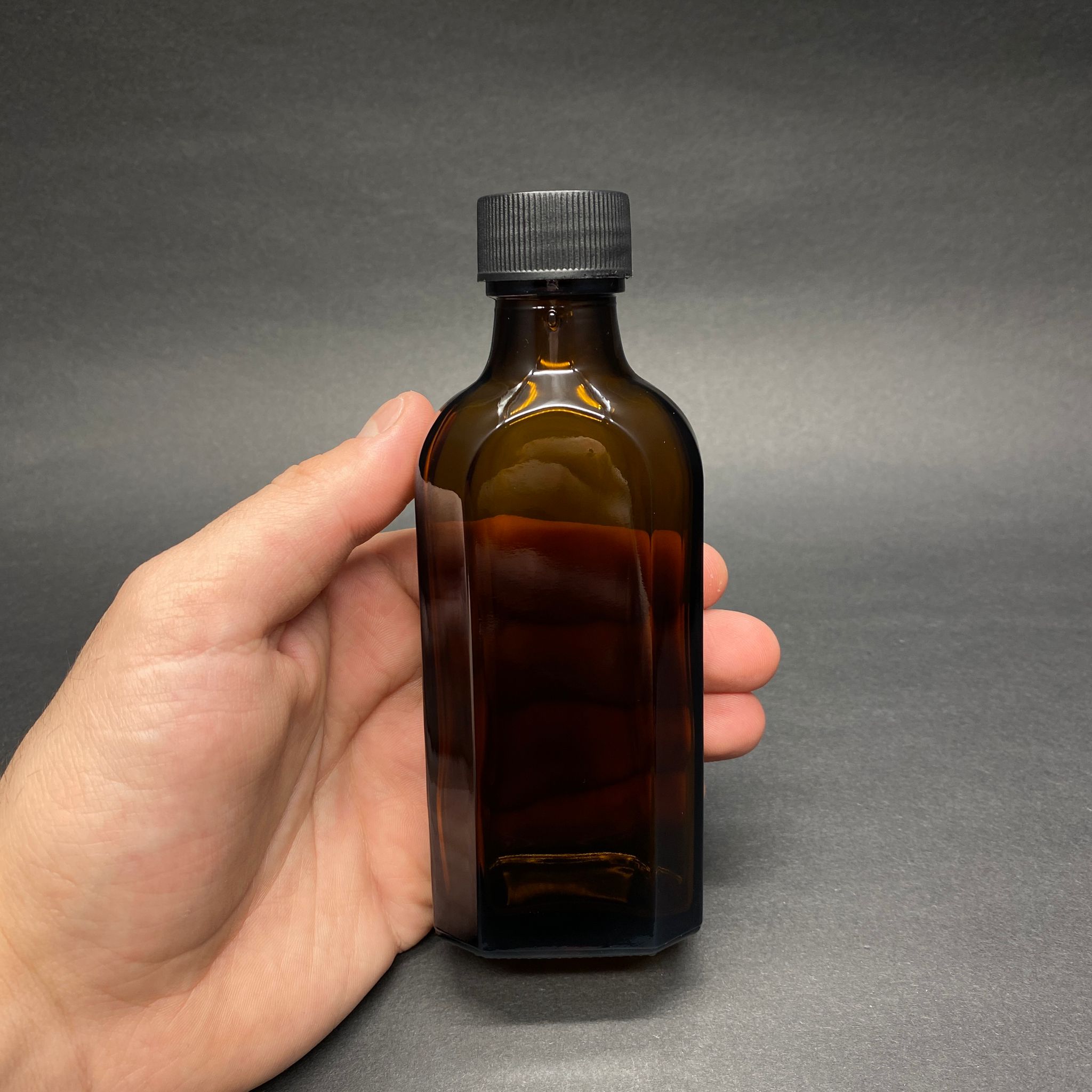100 CC AMBER YASSI CAM ŞİŞE - SİYAH PLASTİK KAPAKLI - 100 ML KAHVERENGİ YASSI MODEL CAM ŞİŞE