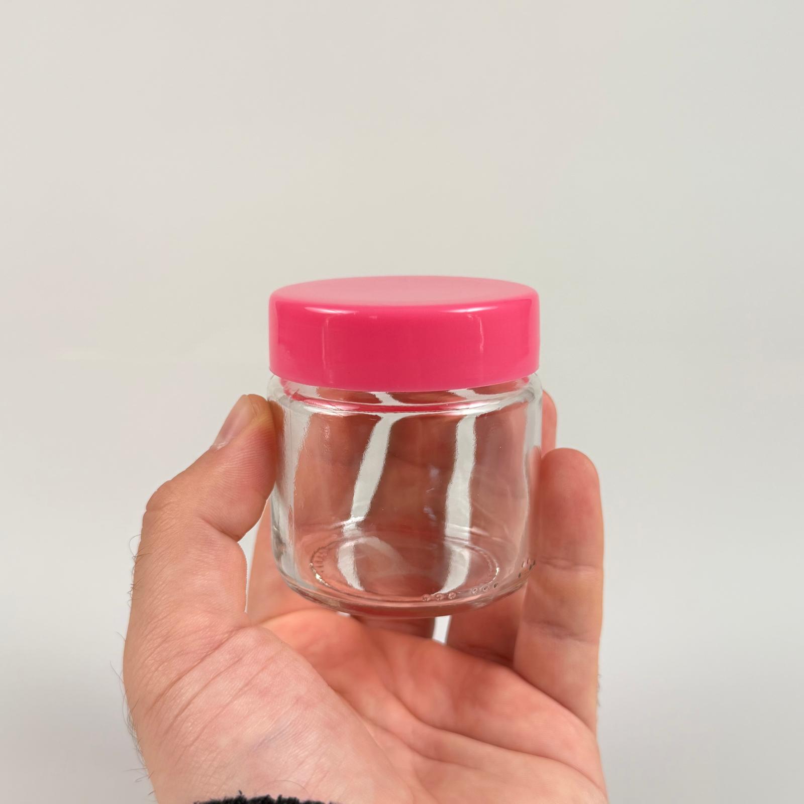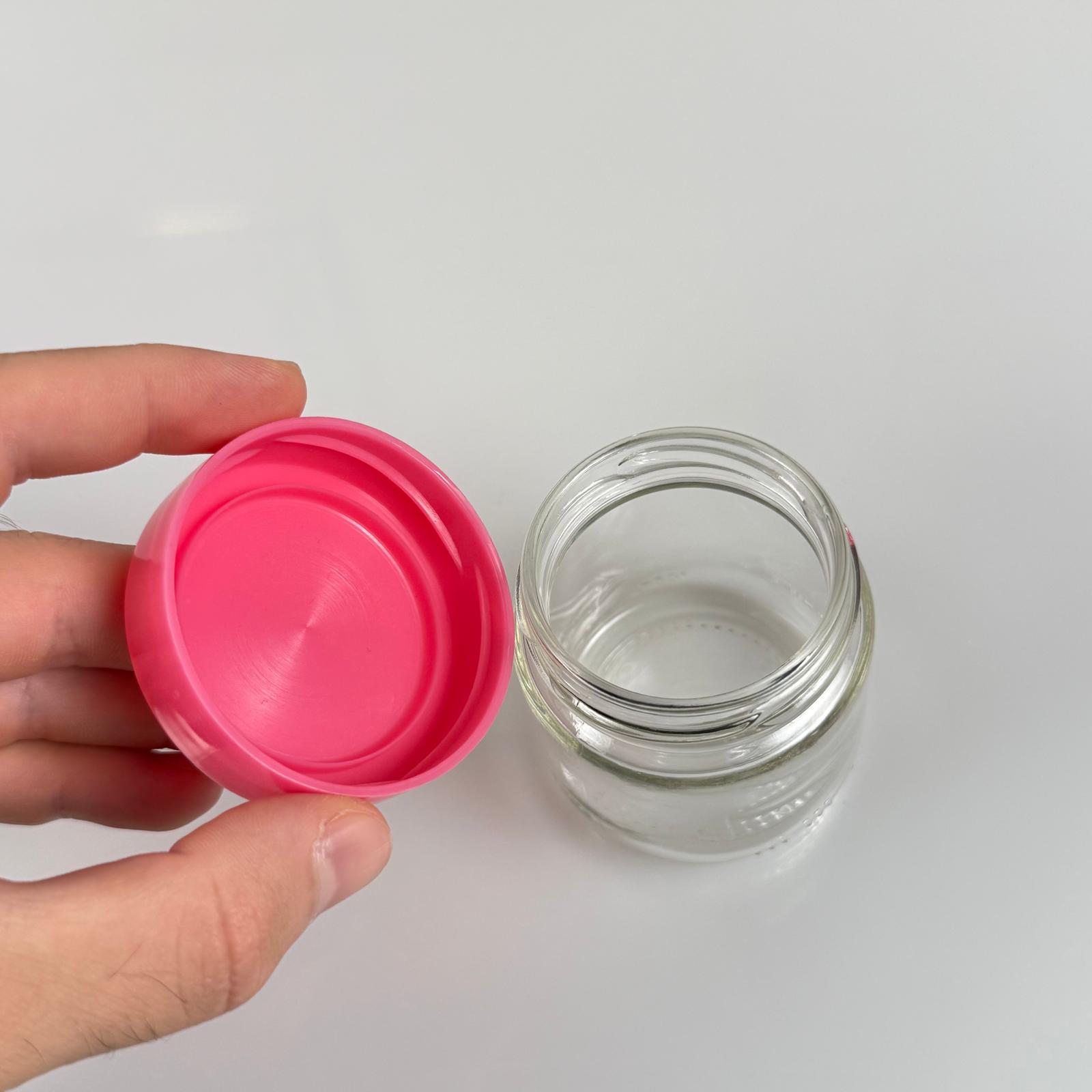 100 CC CAM KAVANOZ + PEMBE PLASTİK KAPAK - 100 ML PLASTİK KAPAKLI CAM KAVANOZ (SİLME 106 CC)