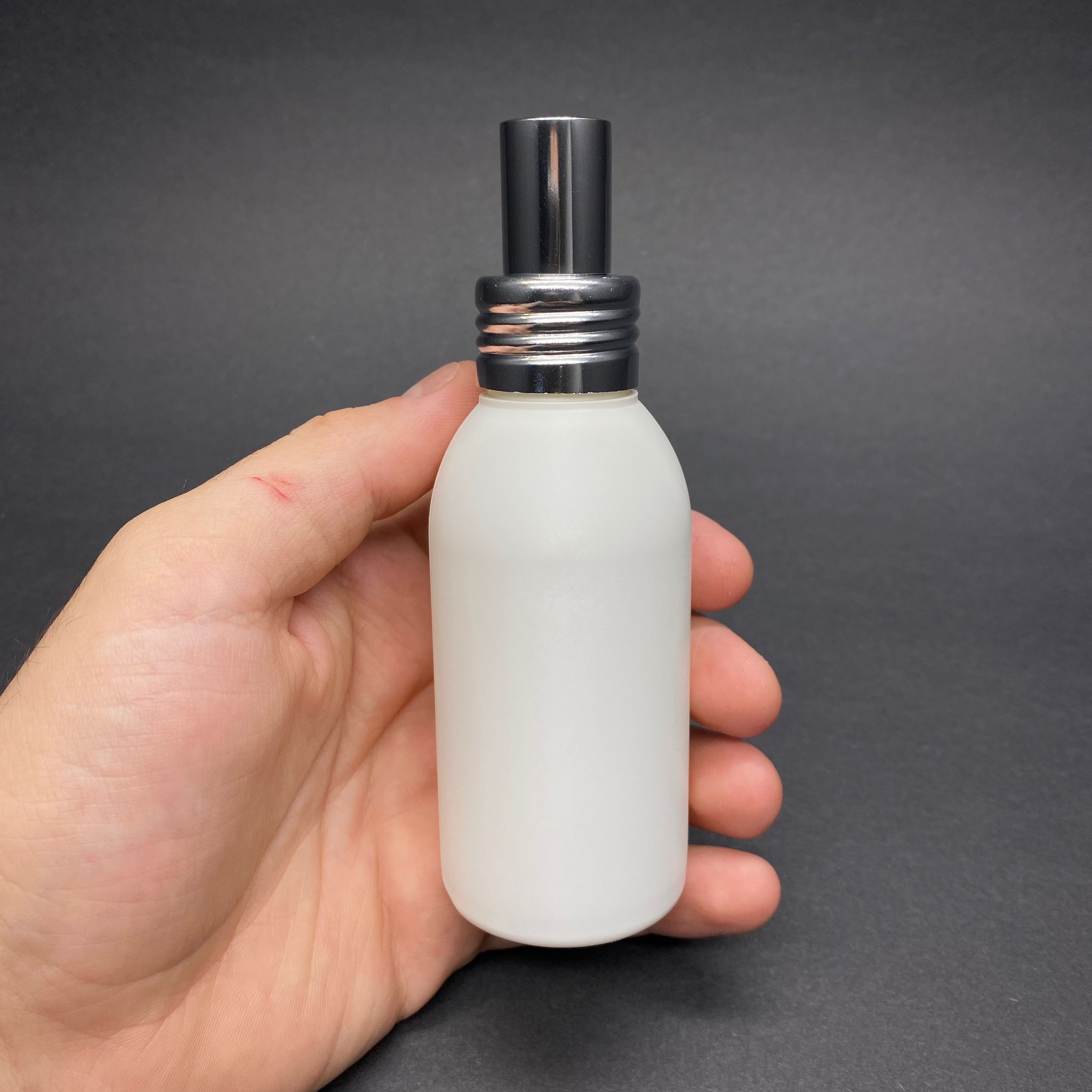100 CC MAT BEYAZ OVAL MODEL PARFÜM KOLONYA POLİETİLEN ŞİŞE - METAL SPREYLİ TAKIM - 100 ML LÜX SPREYLİ PARFÜM - KOLONYA ŞİŞESİ (VİDALI AĞIZ, MANÜEL KAPANIP AÇILABİLİR)