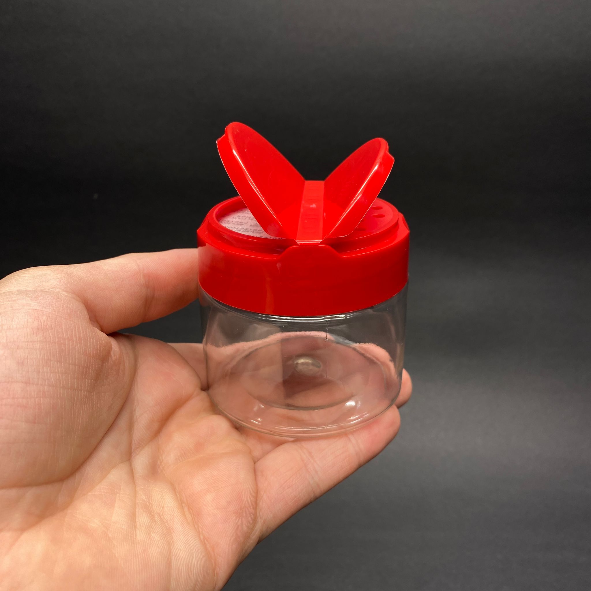 100 CC PET BAHARAT KAVANOZU - KIRMIZI FLİPTOP BAHARAT KAPAKLI + SIZDIRMAZ KENDİNDEN YAPIŞKANLI KÖPÜK CONTALI - toz kavanozu , baharat ambalajı , boş pudra şişesi . tuzluk , baharat düzenleyici set için kavanoz