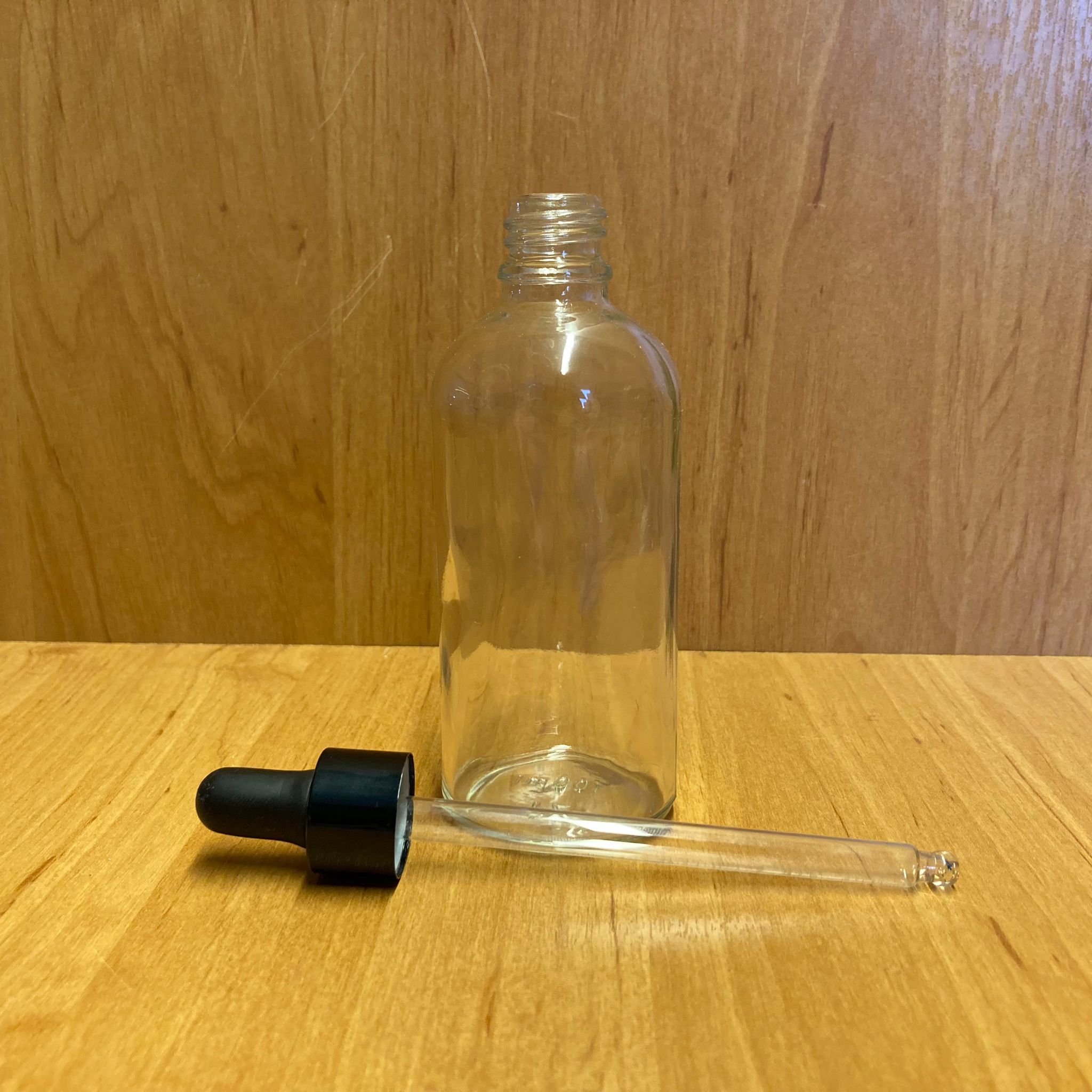 100 CC ŞEFFAF CAM DAMLALIKLI ŞİŞE - SİYAH EMZİK - SİYAH METALİK KAPAK - 100 ML SAYDAM CAM DAMLALIKLI ŞİŞE
