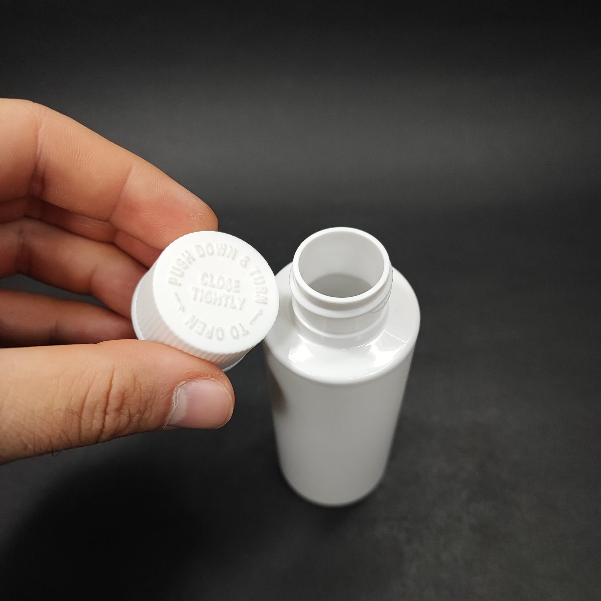 100 CC SİLİNDİR BEYAZ PET ŞİŞE + BEYAZ ÇOCUK KİLİTLİ KAPAK (SIZDIRMAZ KÖPÜK CONTALI) - 100 ML BEYAZ ÇOCUK KİLİTLİ PET ŞİŞE