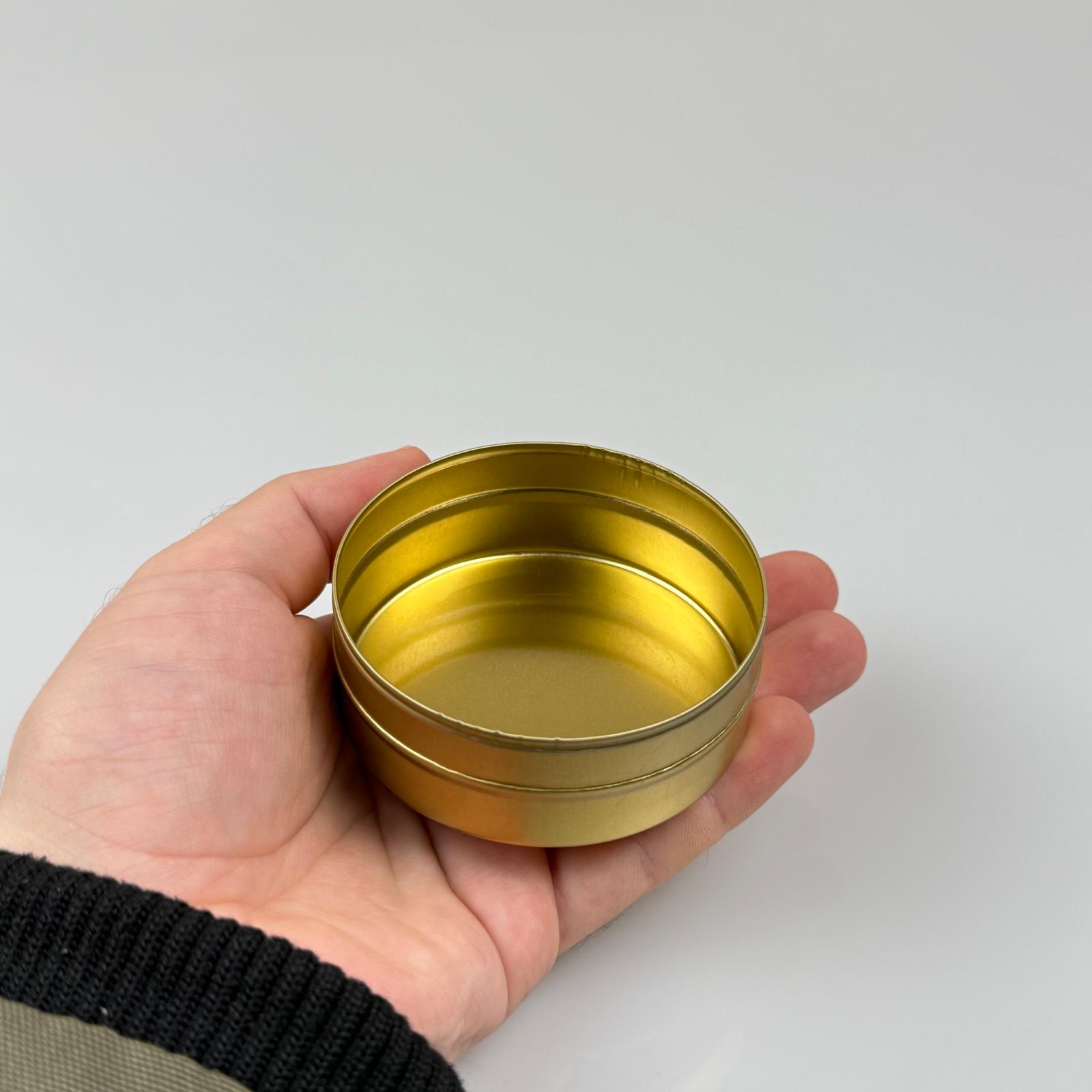 100 CC TENEKE KUTU - GOLD - KAPAKSIZ - METAL AMBALAJ - MUM TENEKESİ 74 X 27 MM