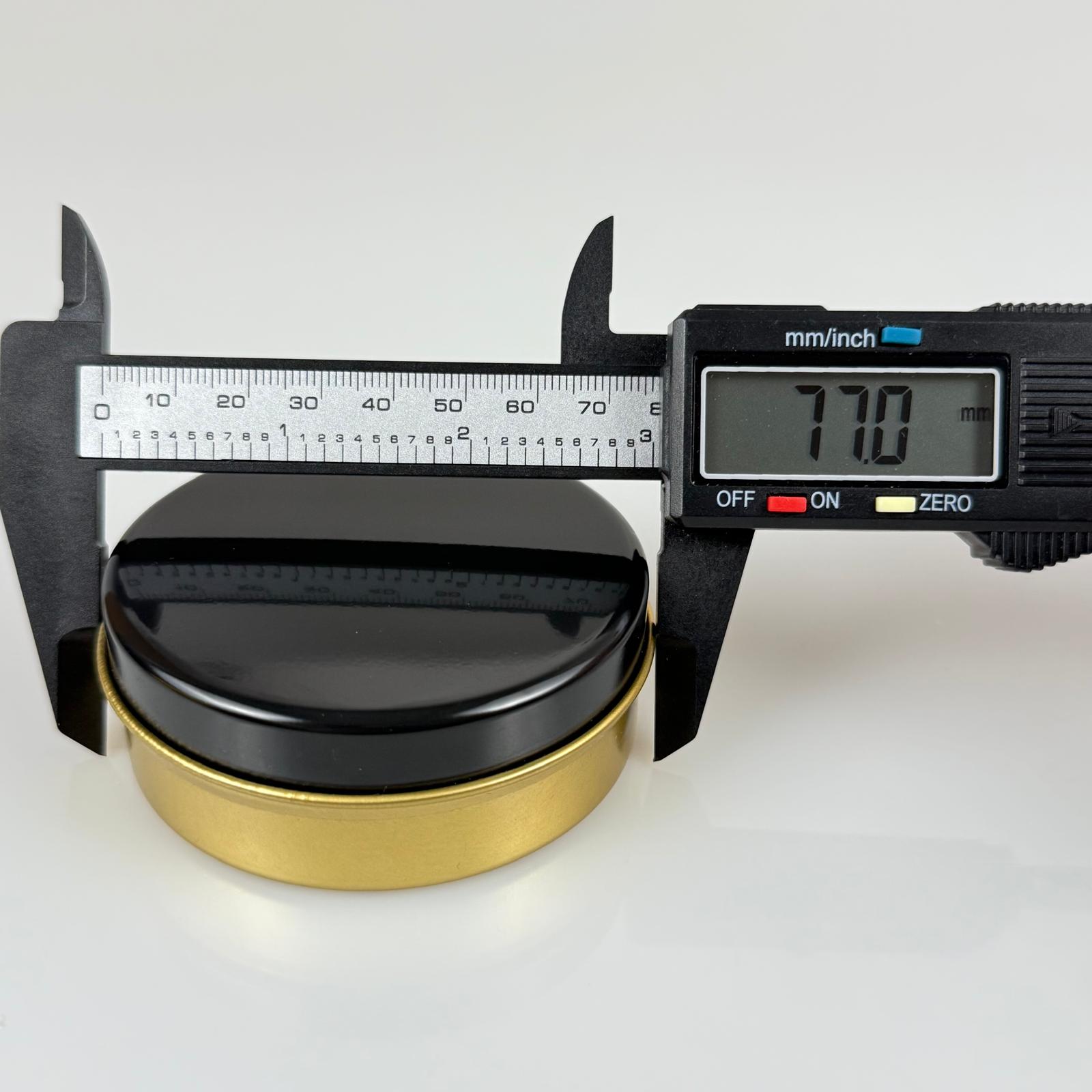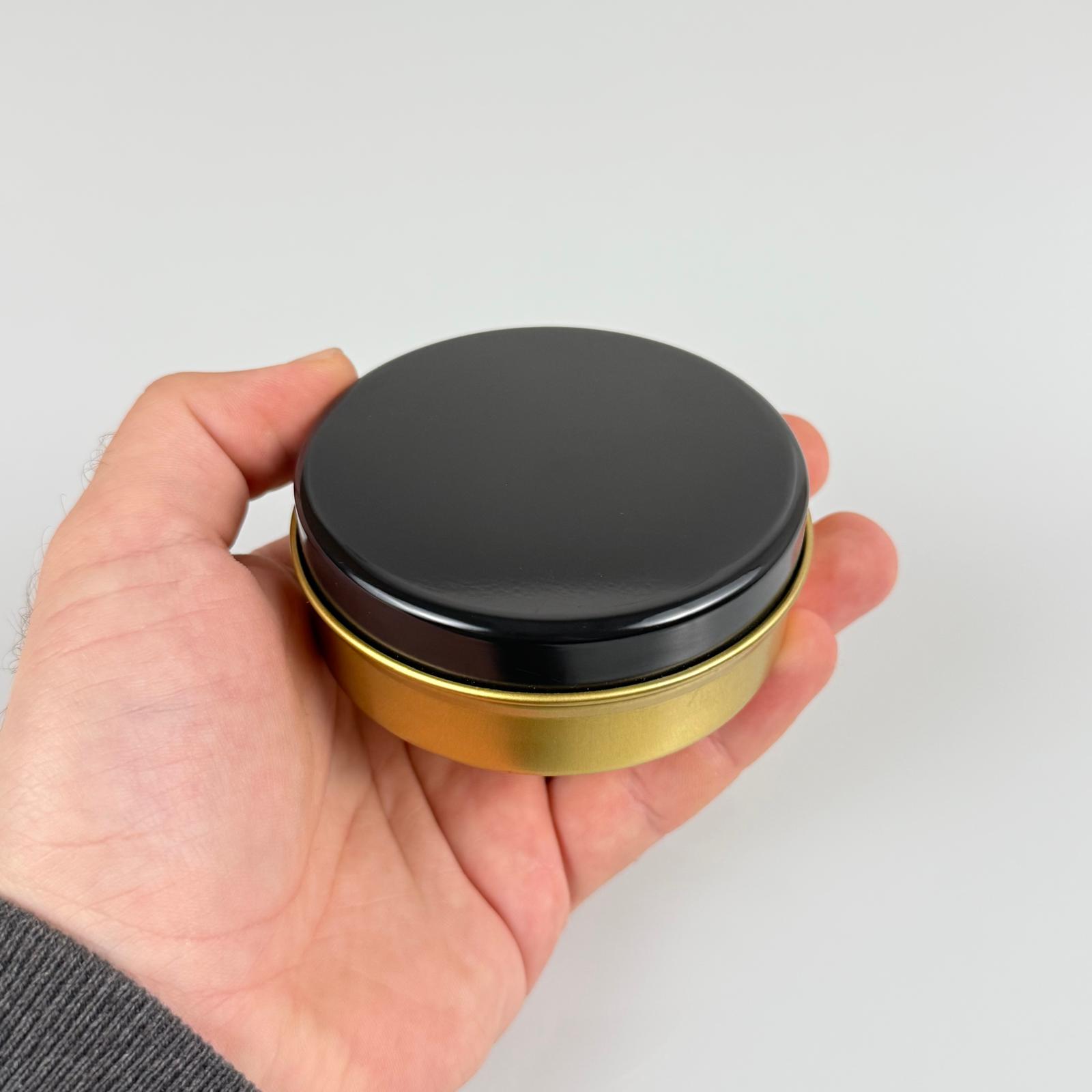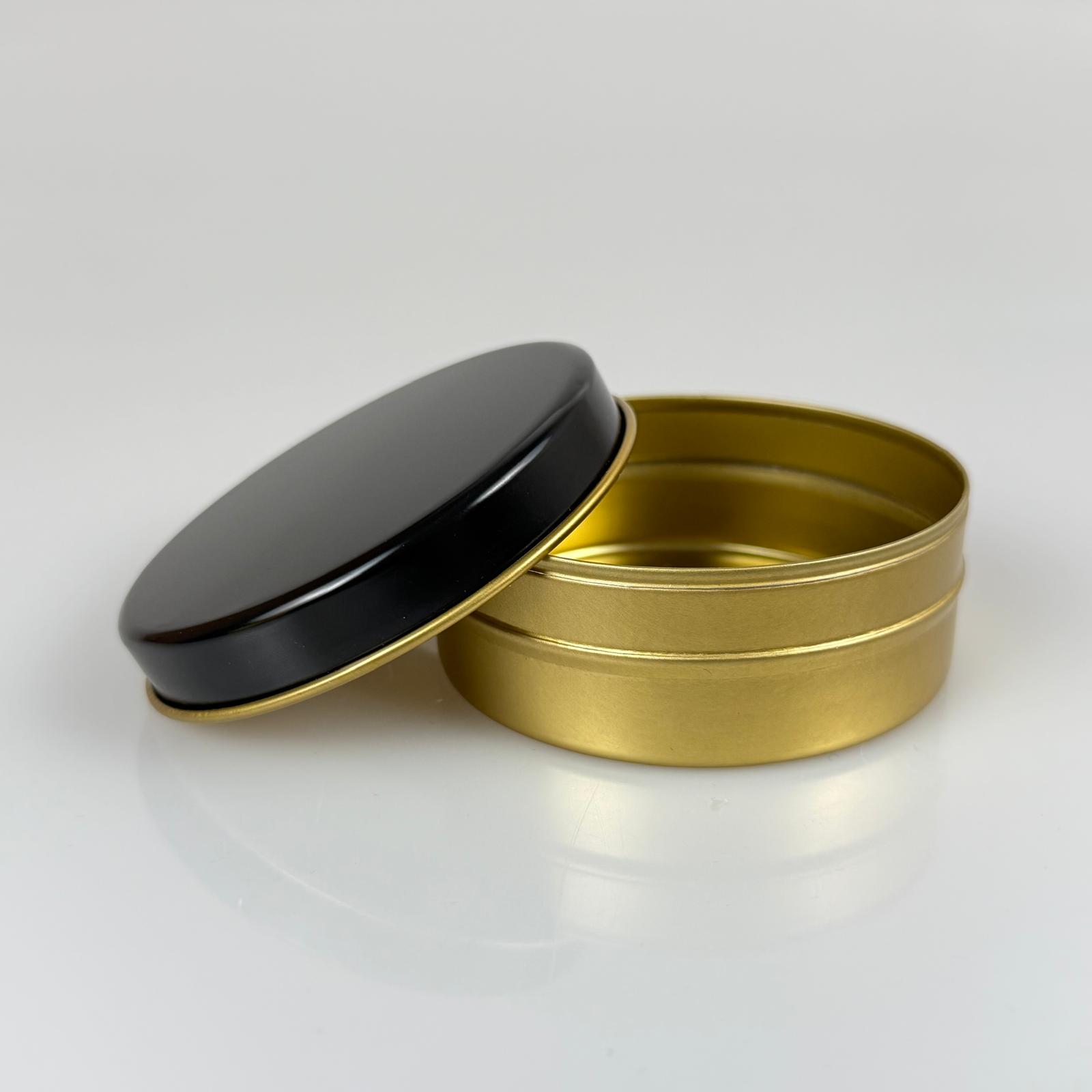 100 CC TENEKE KUTU - GOLD - SİYAH KAPAKLI - METAL AMBALAJ - MUM TENEKESİ 77 X 28 MM