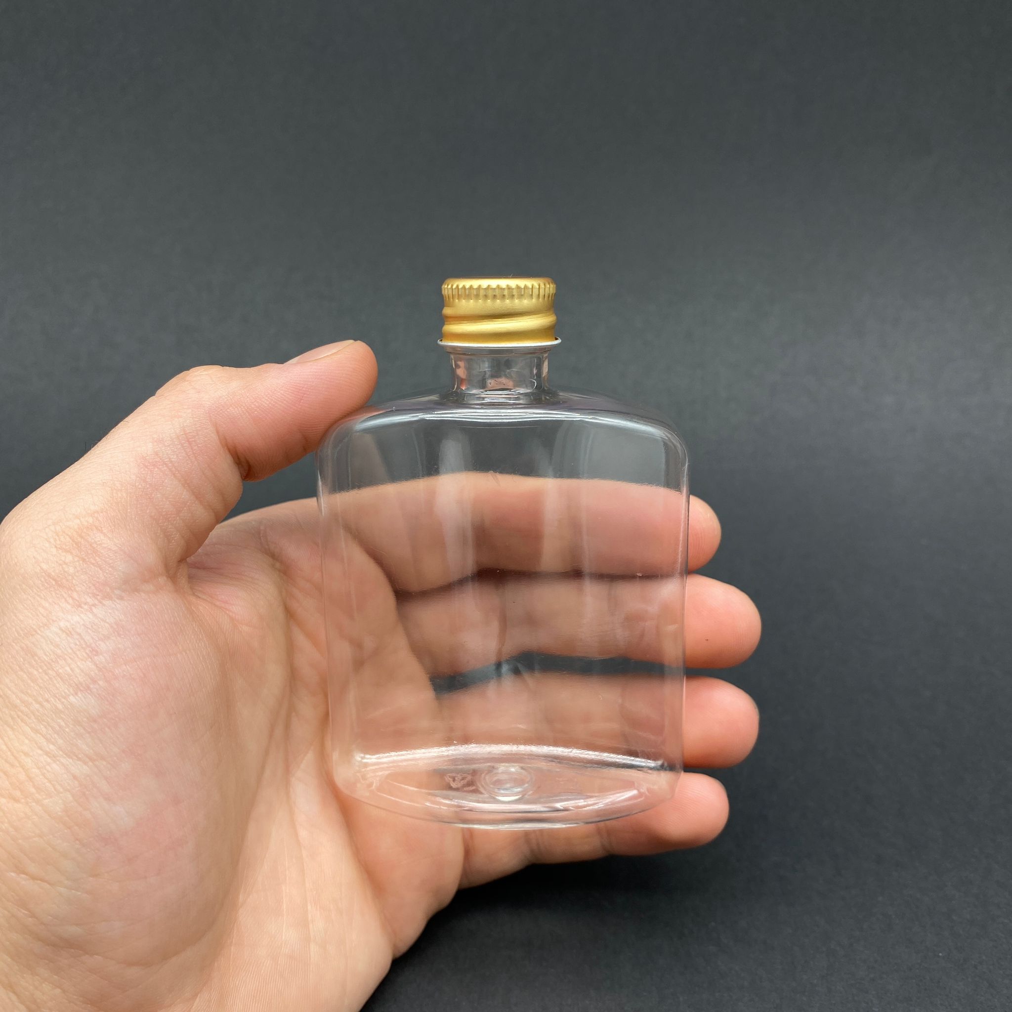 100 CC YASSI PLASTİK ŞİŞE - GOLD ALÜMİNYUM KAPAKLI - 100 ML KAPAKLI PET ŞİŞE