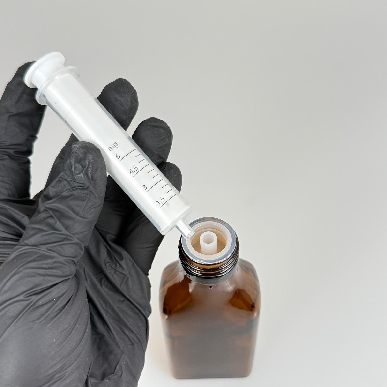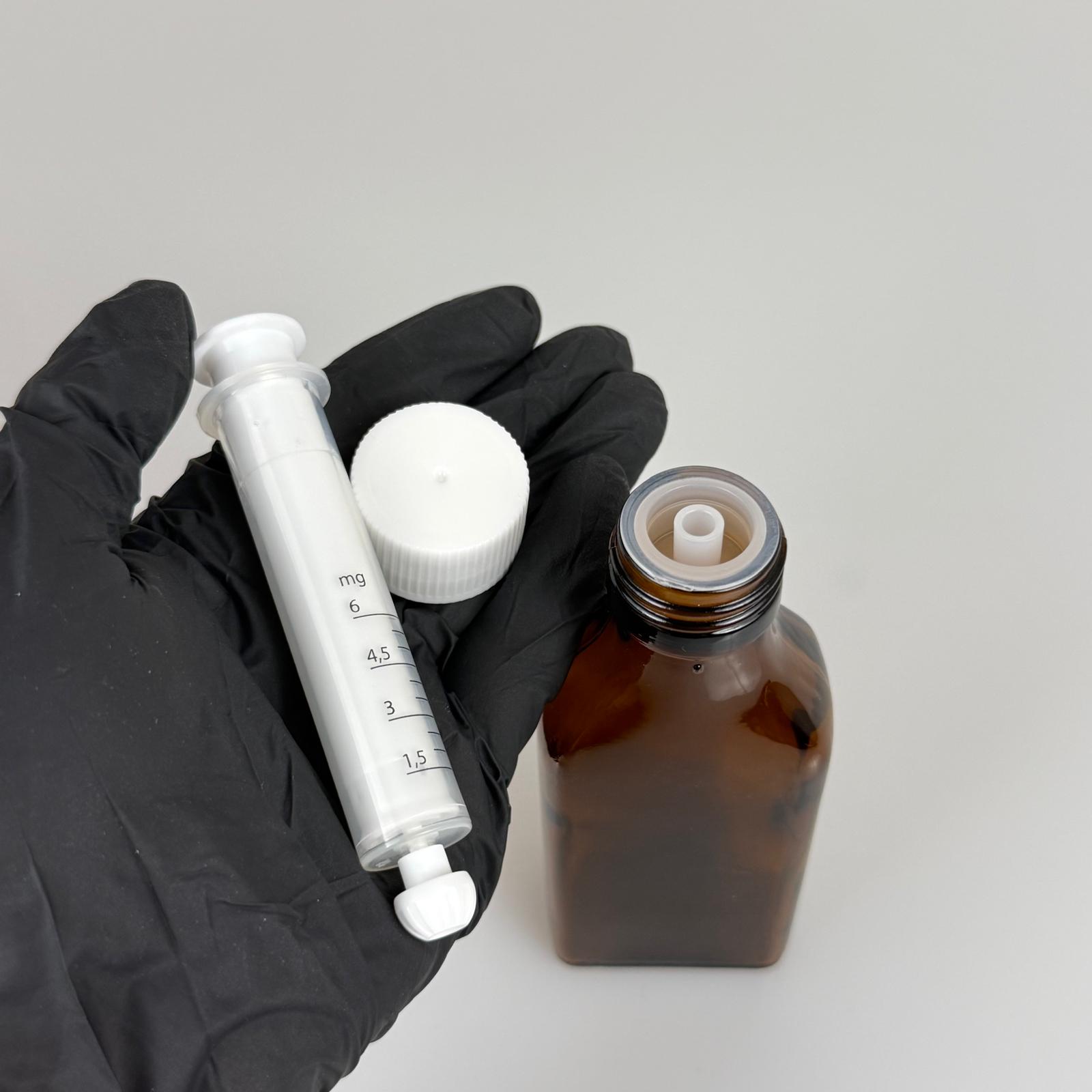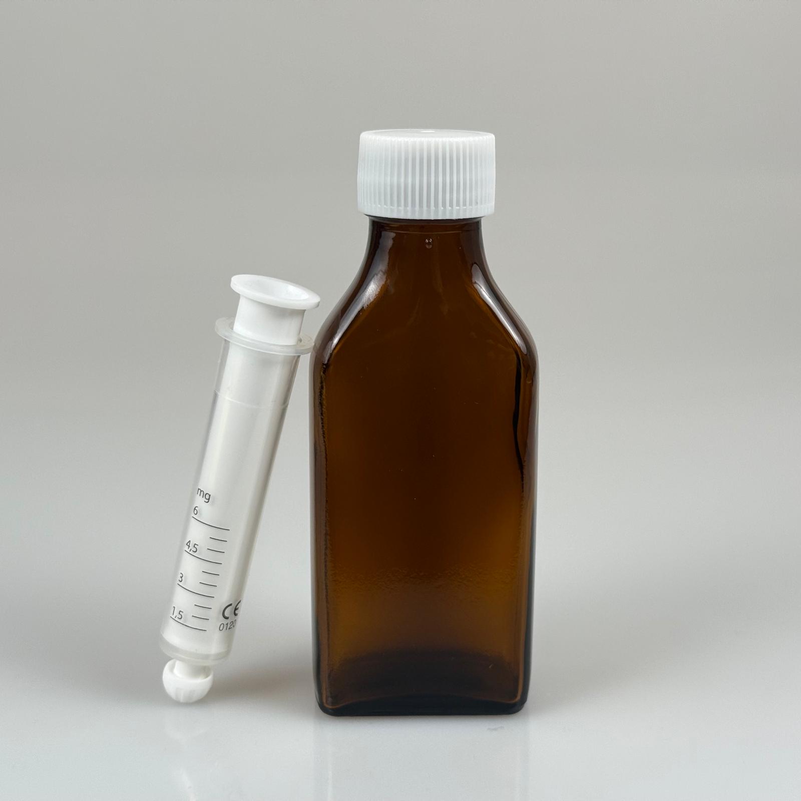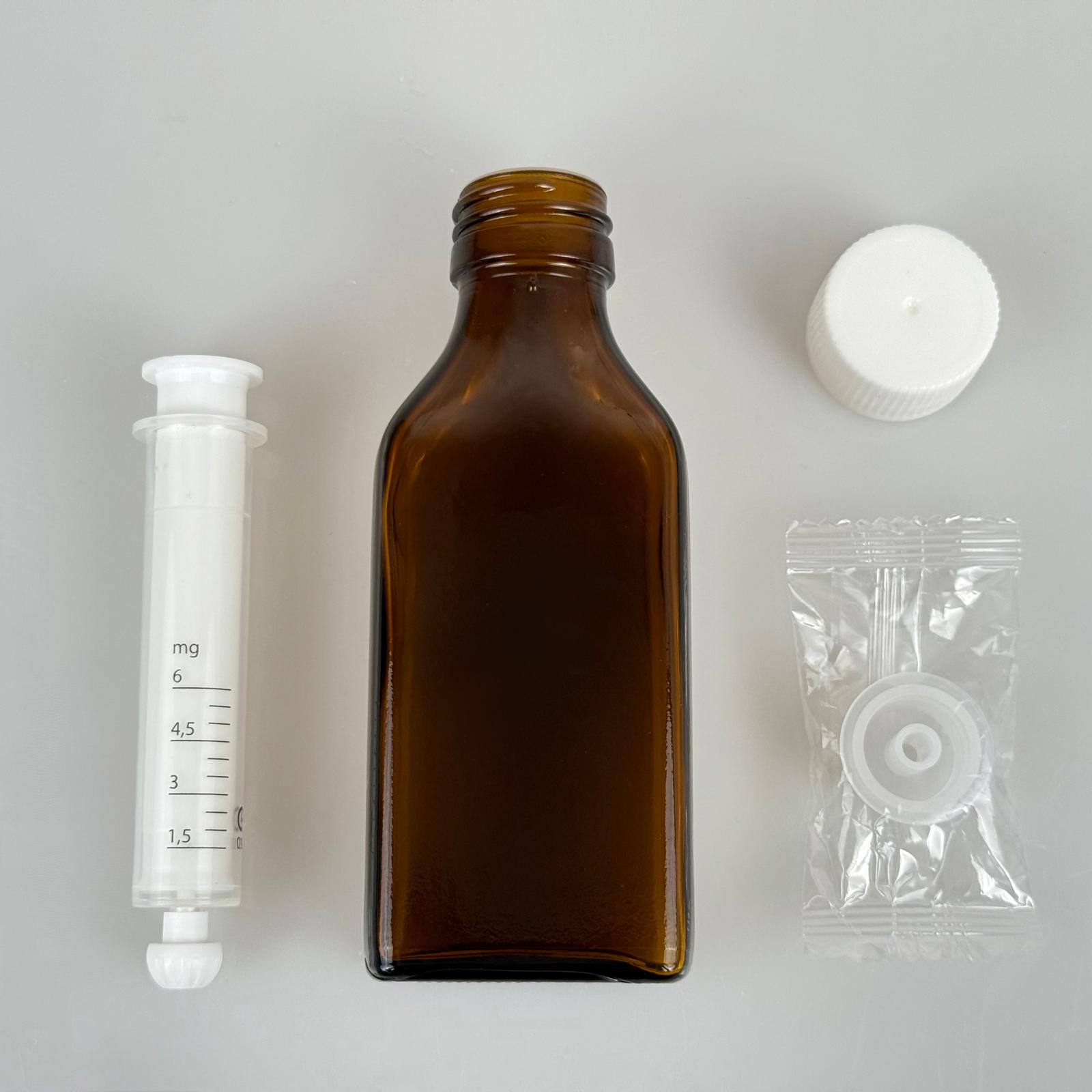 100 ML YASSI CAM ECZA ŞİŞESİ + 6 ML DOZAJ PİPETİ + DOZAJ TIPASI + CONTALI PLASTİK KAPAK TAKIM