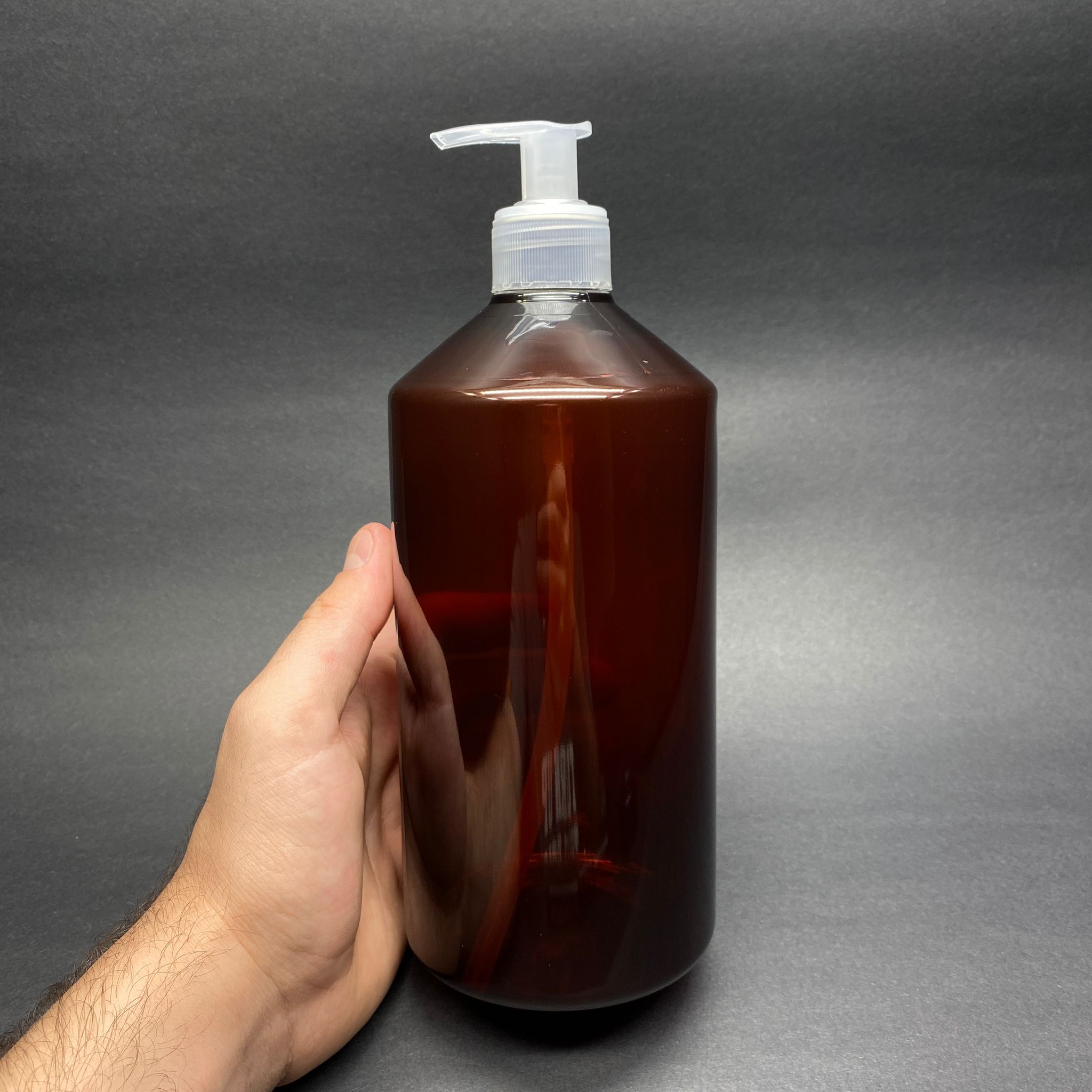950 CC DÜZ MODEL KÜT BOYUNLU AMBER PET ŞİŞE - SIVI SABUN POMPALI - 950 ML DÜZ SADE PET ŞİŞE