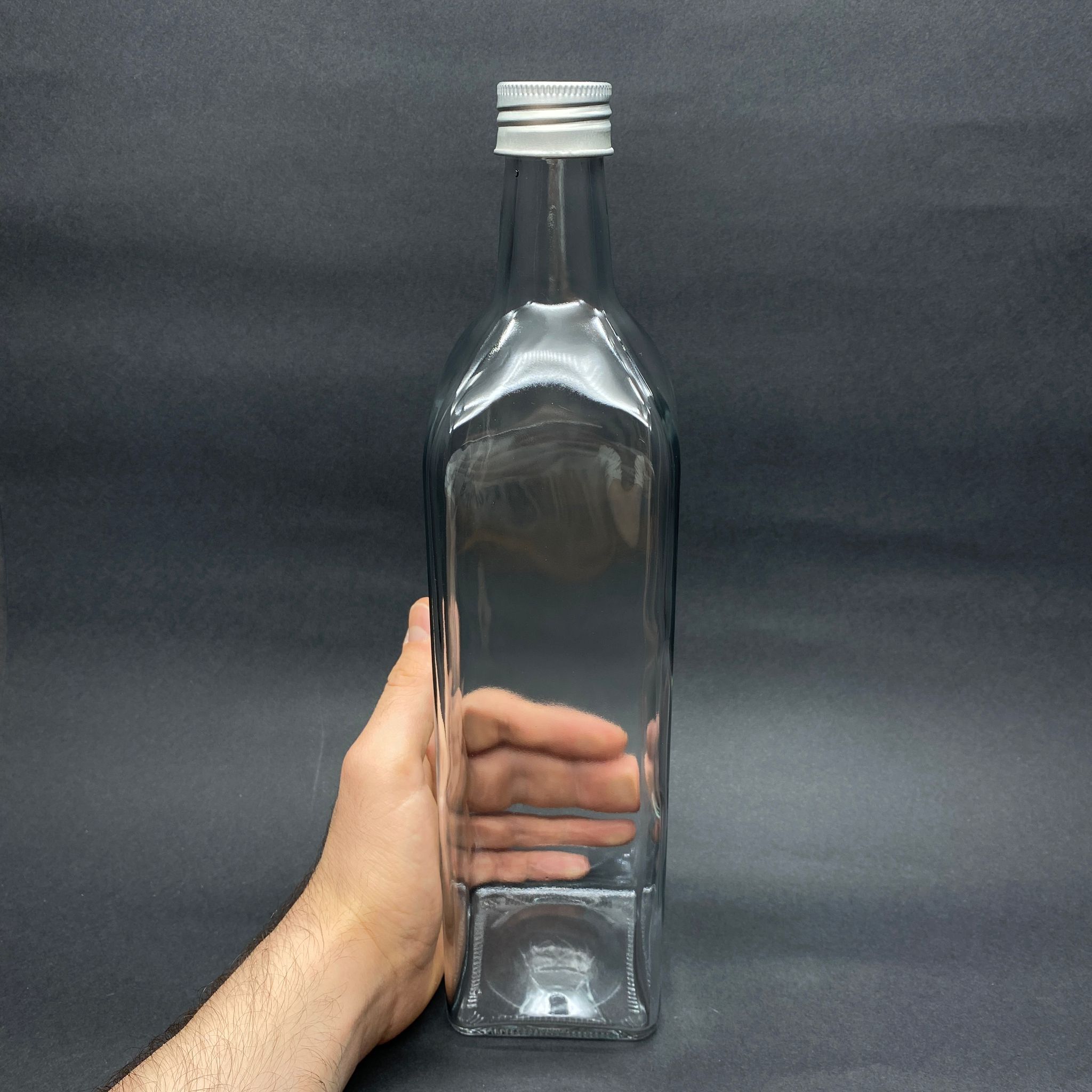 1000 CC MARASKA CAM ŞİŞE - GÜMÜŞ METAL KAPAKLI - 1 LİTRE KÖŞELİ YAĞ ŞİŞESİ - SİRKE ŞİŞESİ - 1 LT YAĞ ŞİŞESİ
