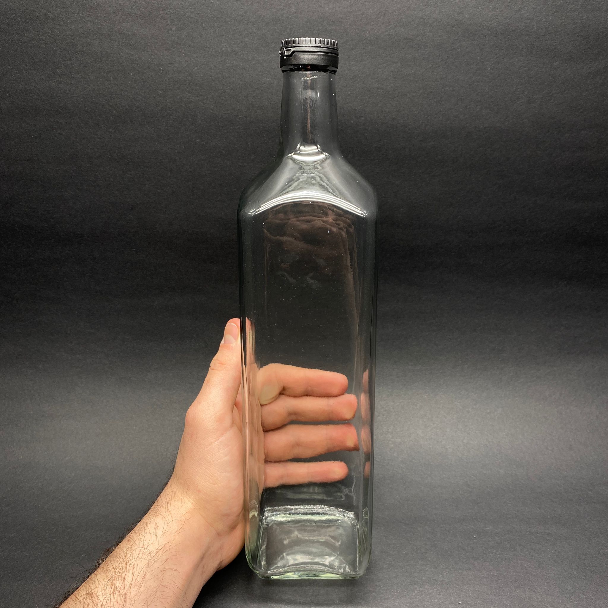 1000 CC MARASKA CAM ŞİŞE - YANDAN YIRTMAÇLI KİLİTLİ SİYAH ÇAKMA KAPAKLI - 1 LİTRE KÖŞELİ CAM ŞİŞE - BASTIRARAK KAPANIR