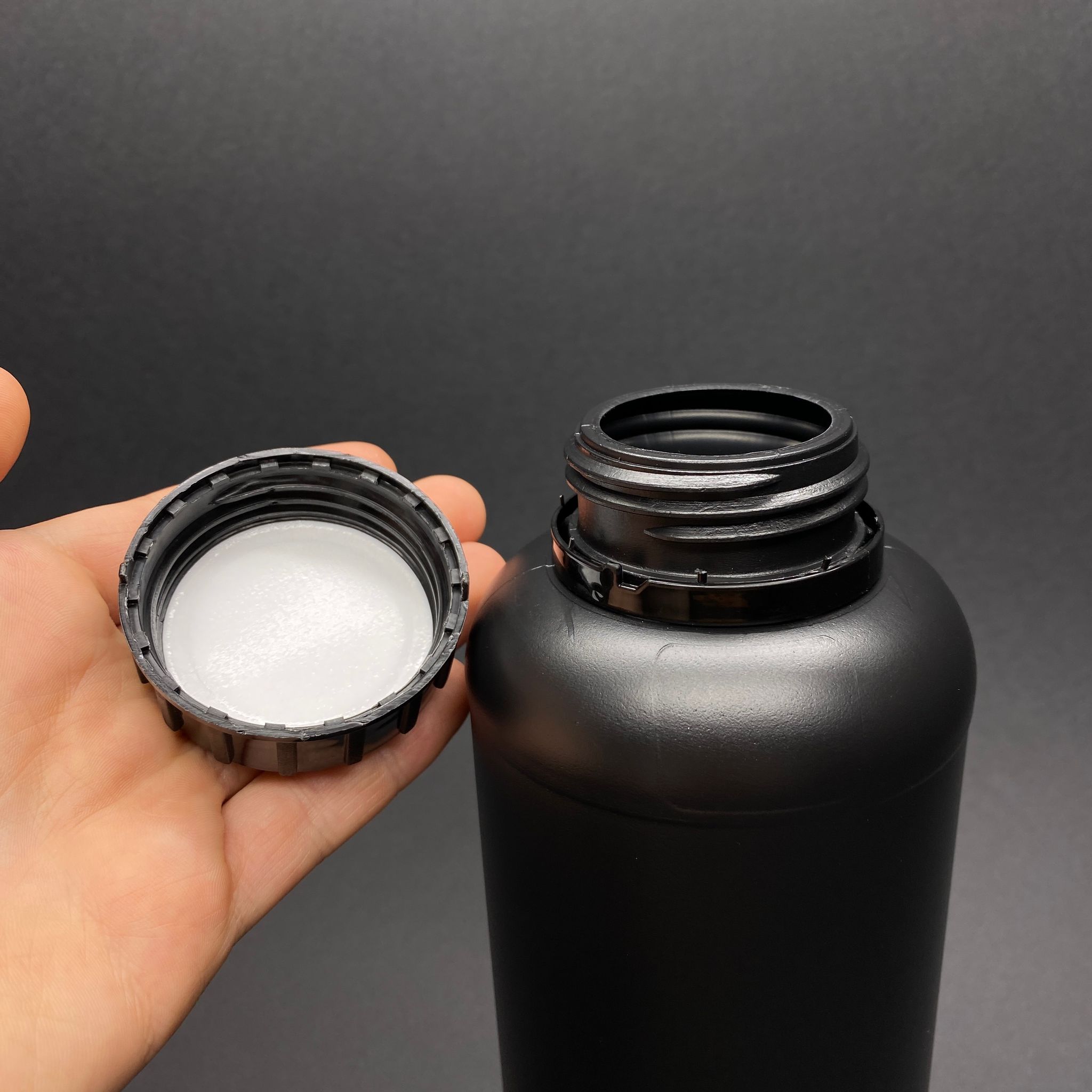 1000 CC TARIM ŞİŞESİ - SİYAH - KÖPÜK CONTALI SİYAH KİLİTLİ KAPAKLI - 1 LİTRE GENİŞ AĞIZLI KALIN POLİETİEN ŞİŞE - ZİRAİ İLAÇ ŞİŞESİ