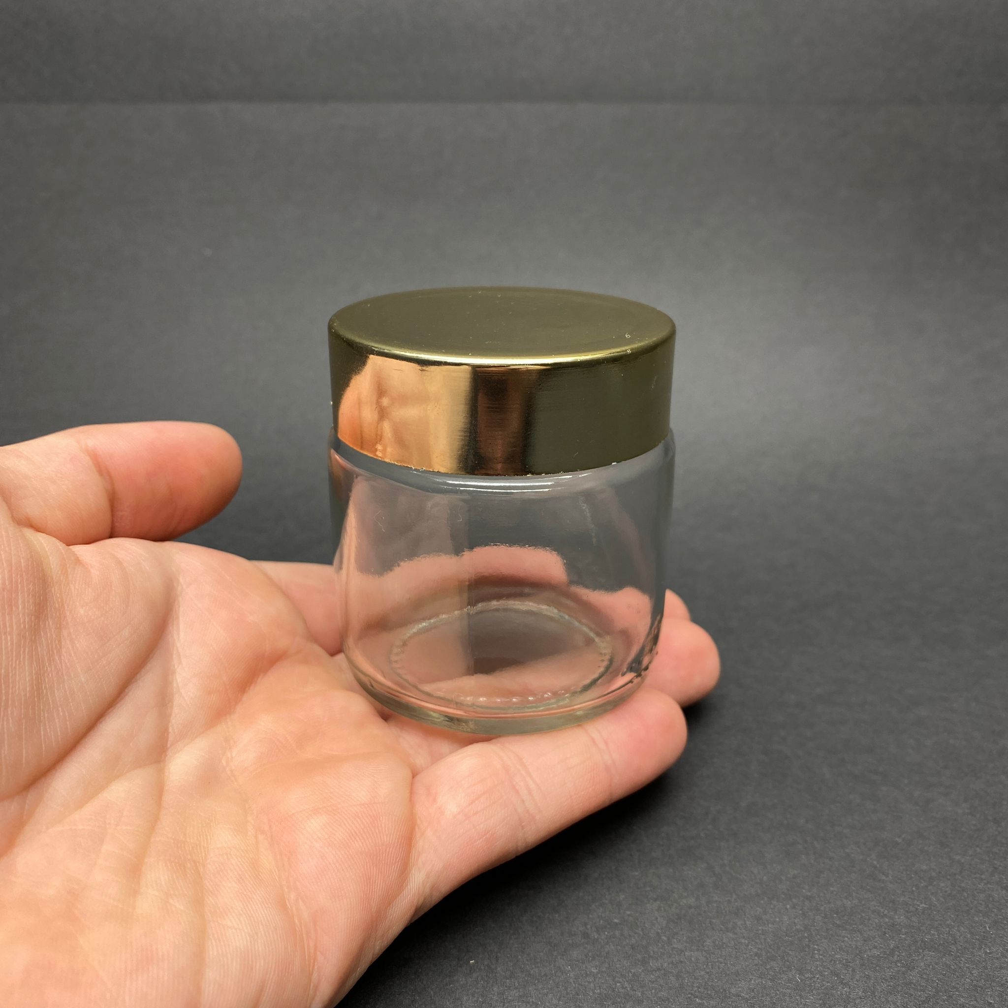 106 CC KAVANOZ - PLASTİK GOLD KAPLAMALI KAPAKLI - 106 ML CAM KAVANOZ