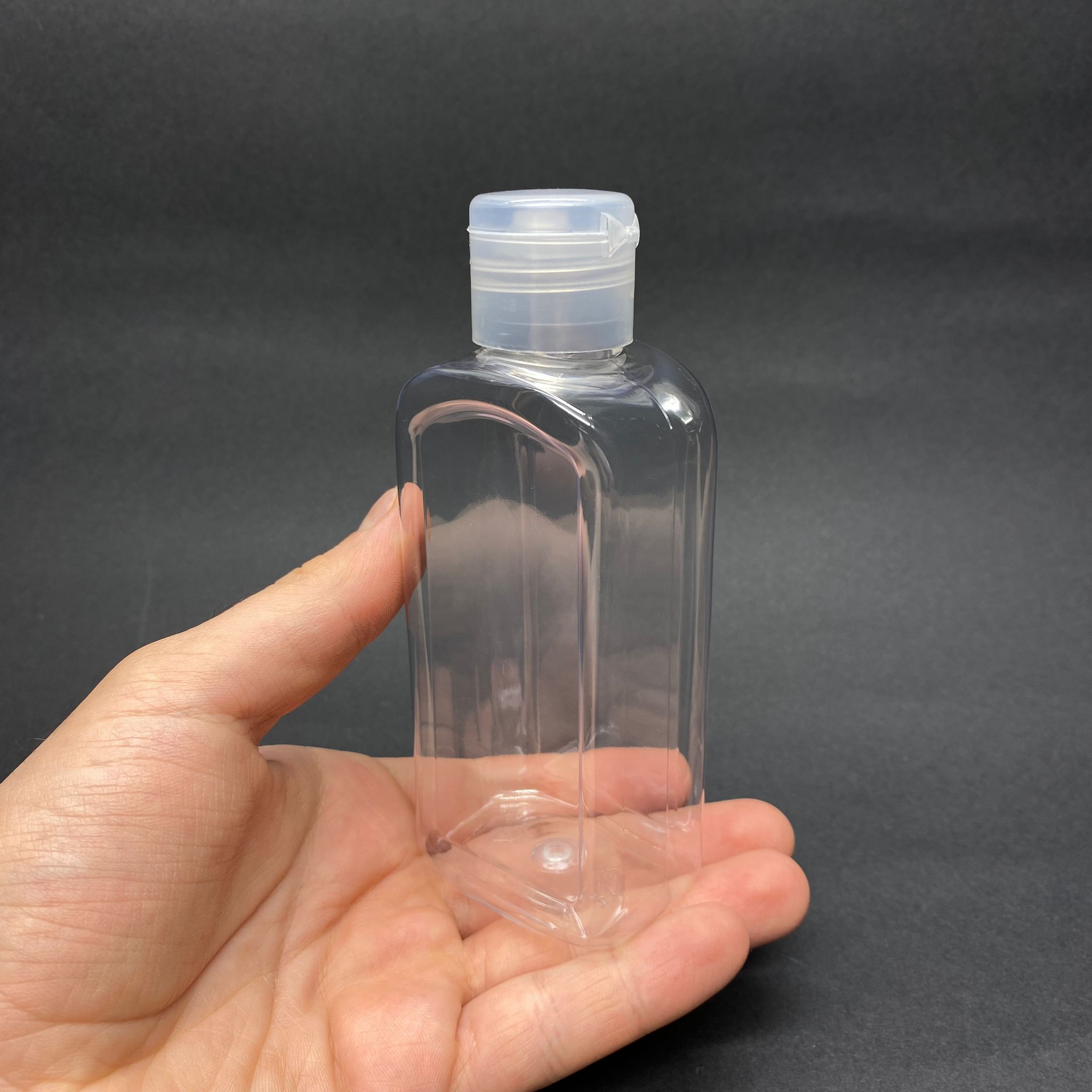 140 CC YASSI KÖŞELİ SERT PLASTİK ŞİŞE - ŞEFFAF FLİPTOP AKITICILI KAPAKLI - ÇITÇIT KAPAKLI - 140 ML PLASTİK YASSI ŞİŞE