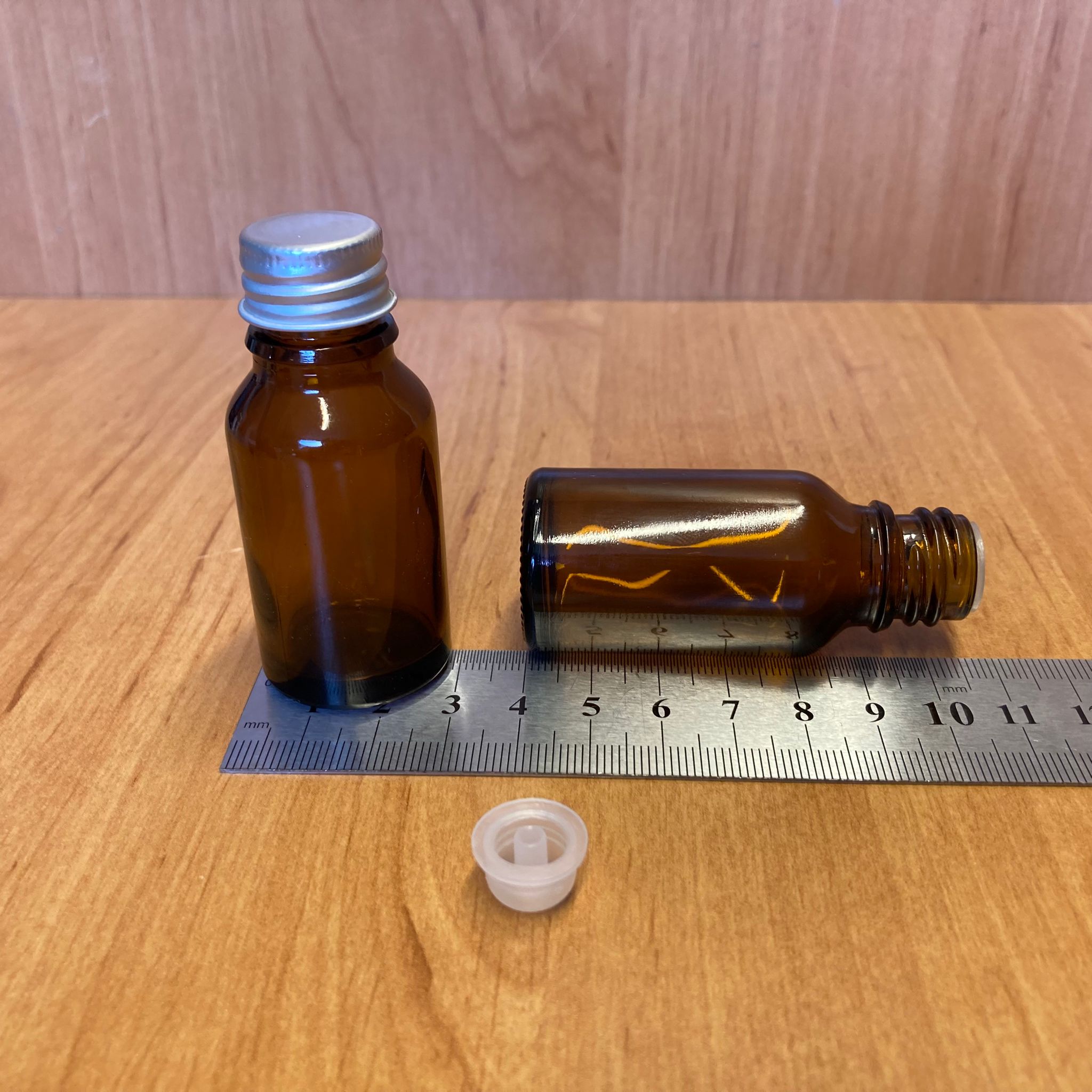15 CC AMBER İÇTEN DAMLALIKLI - GÜMÜŞ METAL KAPAKLI CAM ŞİŞE - 15 ML KOLONYA TIPALI CAM ŞİŞE