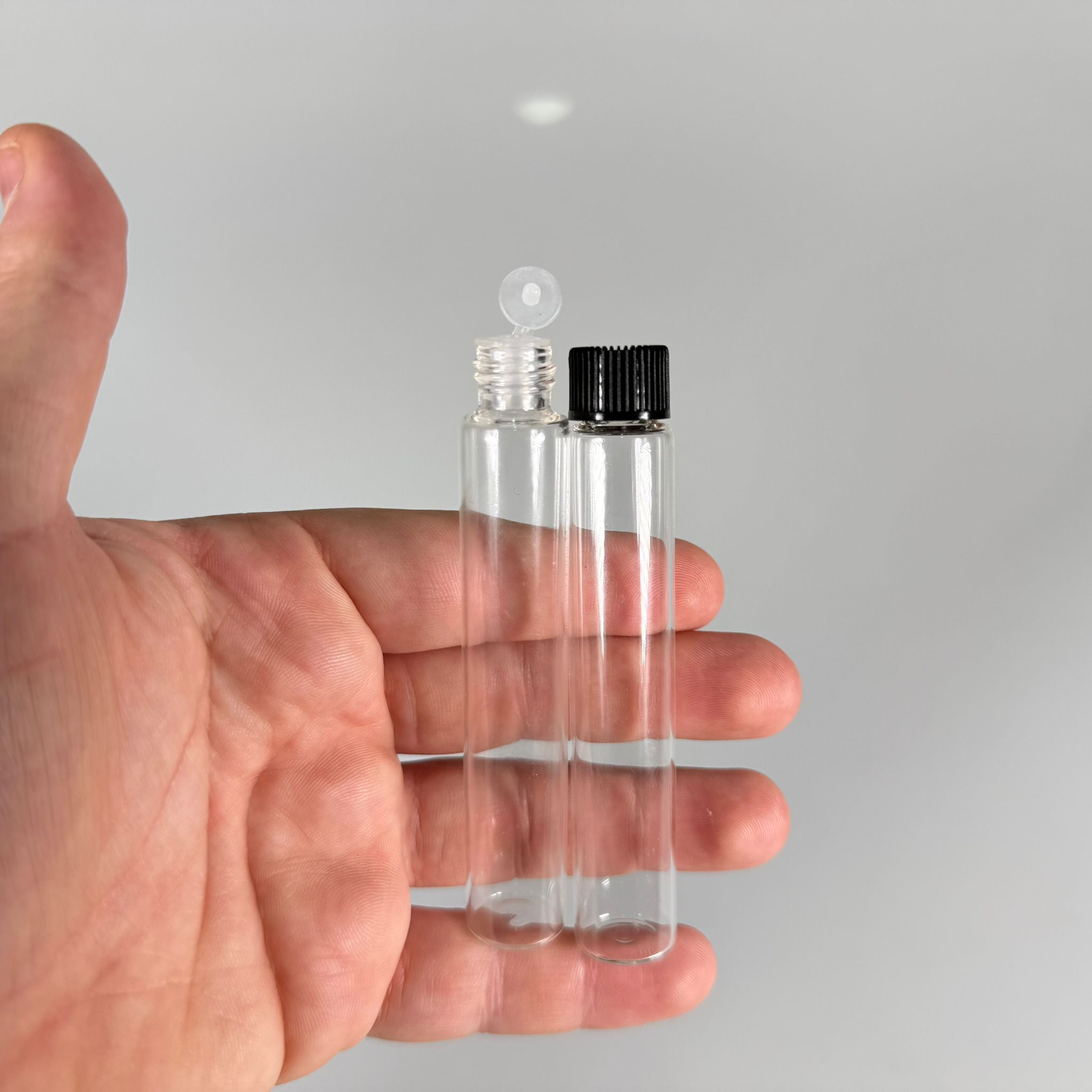 15 CC ŞEFFAF İNCE CAM ŞİŞE - SİYAH KAPAKLI + İÇTEN DAMLALIKLI - 15 ML CAM ŞİŞE