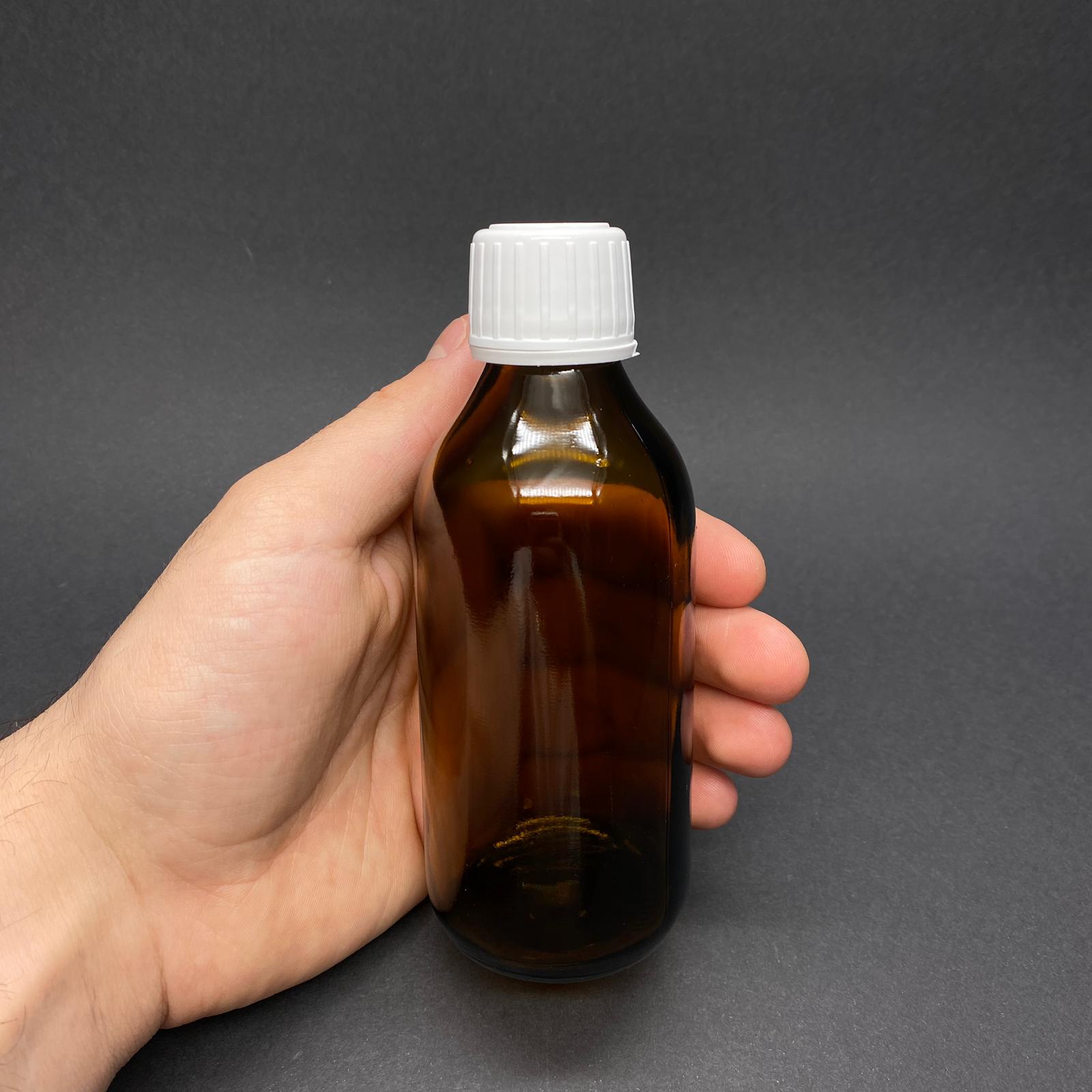 150 CC AMBER CAM ŞİŞE - 25 PP AĞIZ - BEYAZ KİLİTLİ ECZA KAPAKLI - 150 ML KAHVERENGİ BOŞ ŞURUP ŞİŞESİ - 150 ML ECZA ŞİŞESİ 25 PP