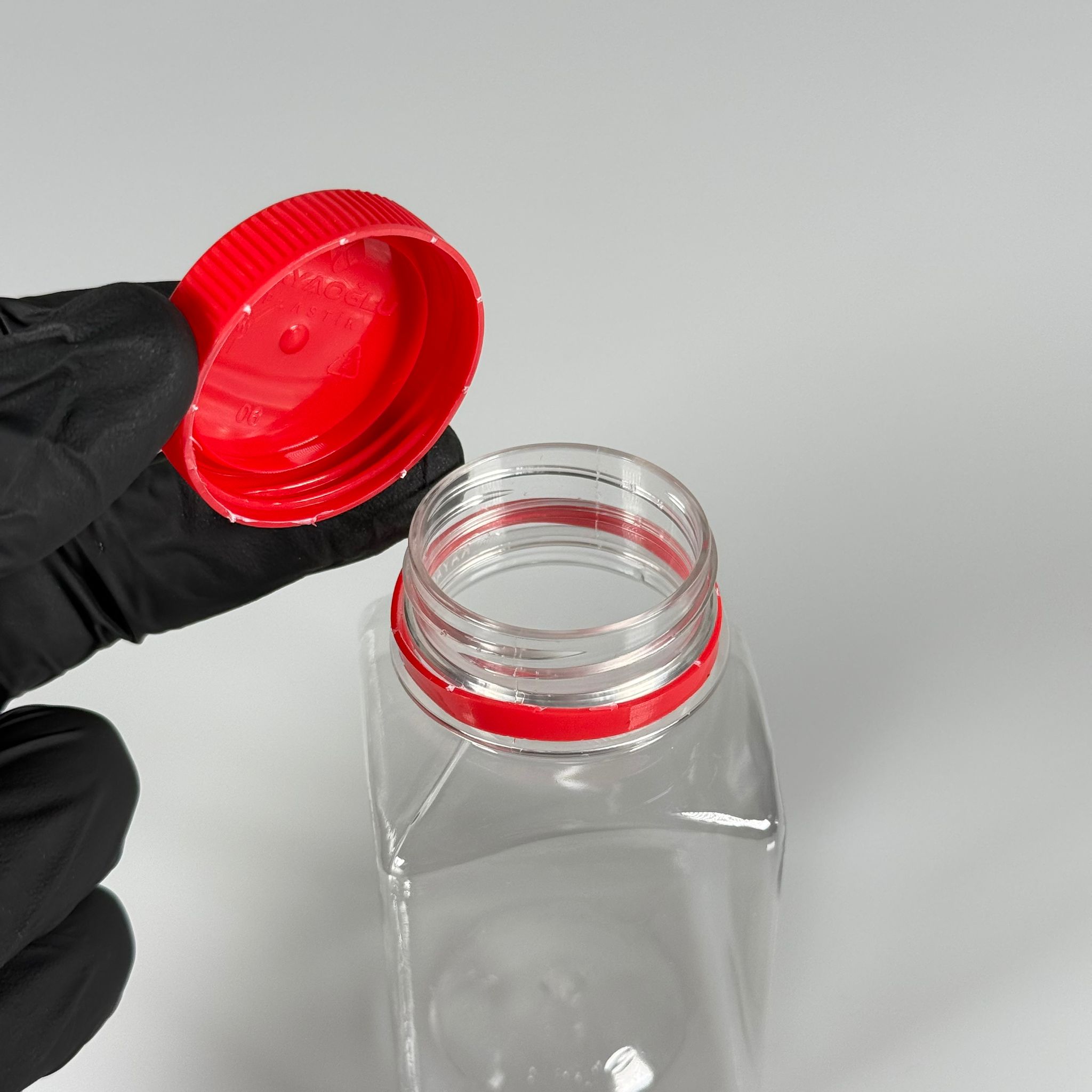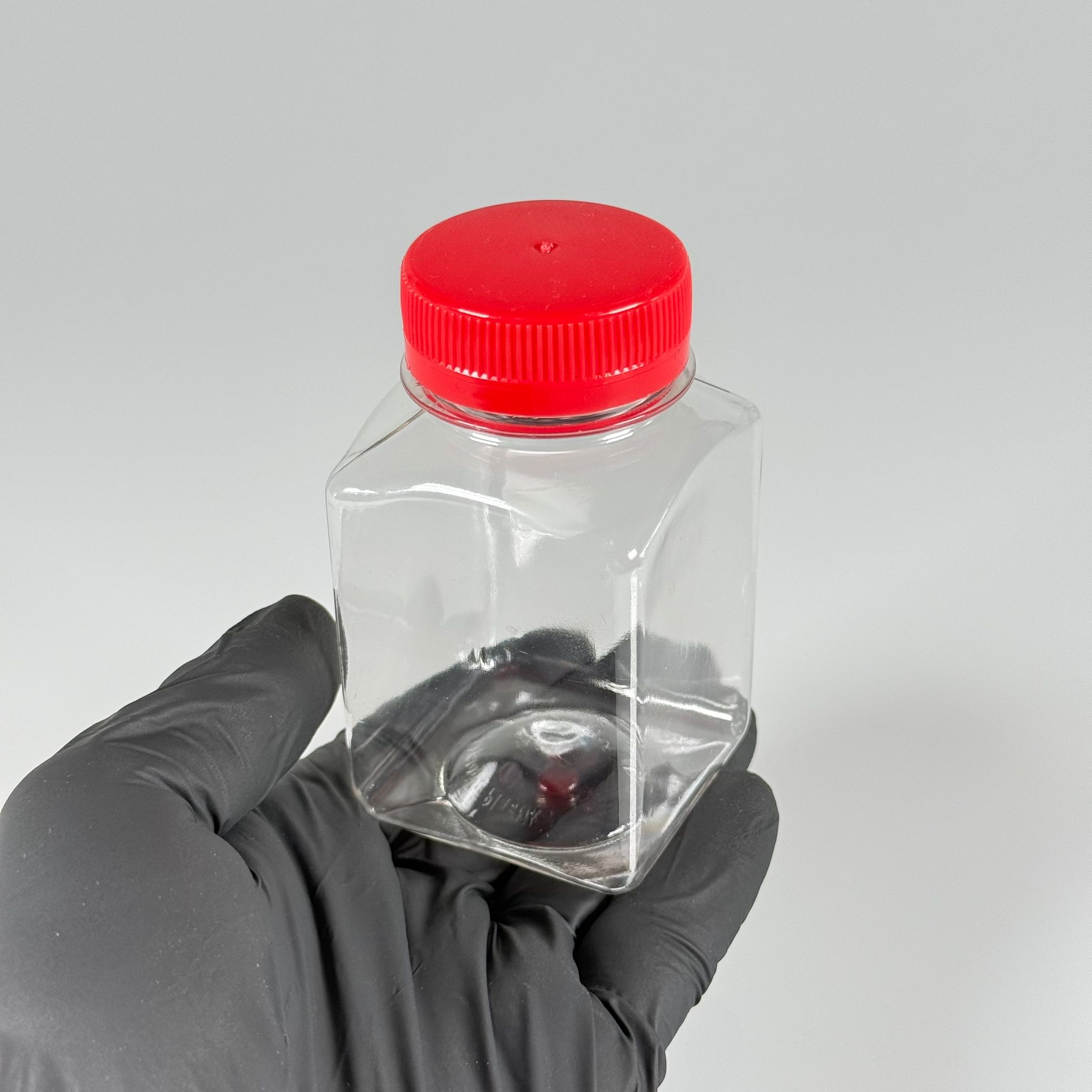 150 CC KÖŞELİ KARE PET ŞİŞE (15,6 GR) - 38 MM GENİŞ AĞIZLI KİLİTLİ KIRMIZI - 150 ML DETOX, MEYVE SUYU, SMOOTHIE, AYRAN, SÜT, MEŞRUBAT VB İÇİN BOŞ PLASTİK ŞİŞELER