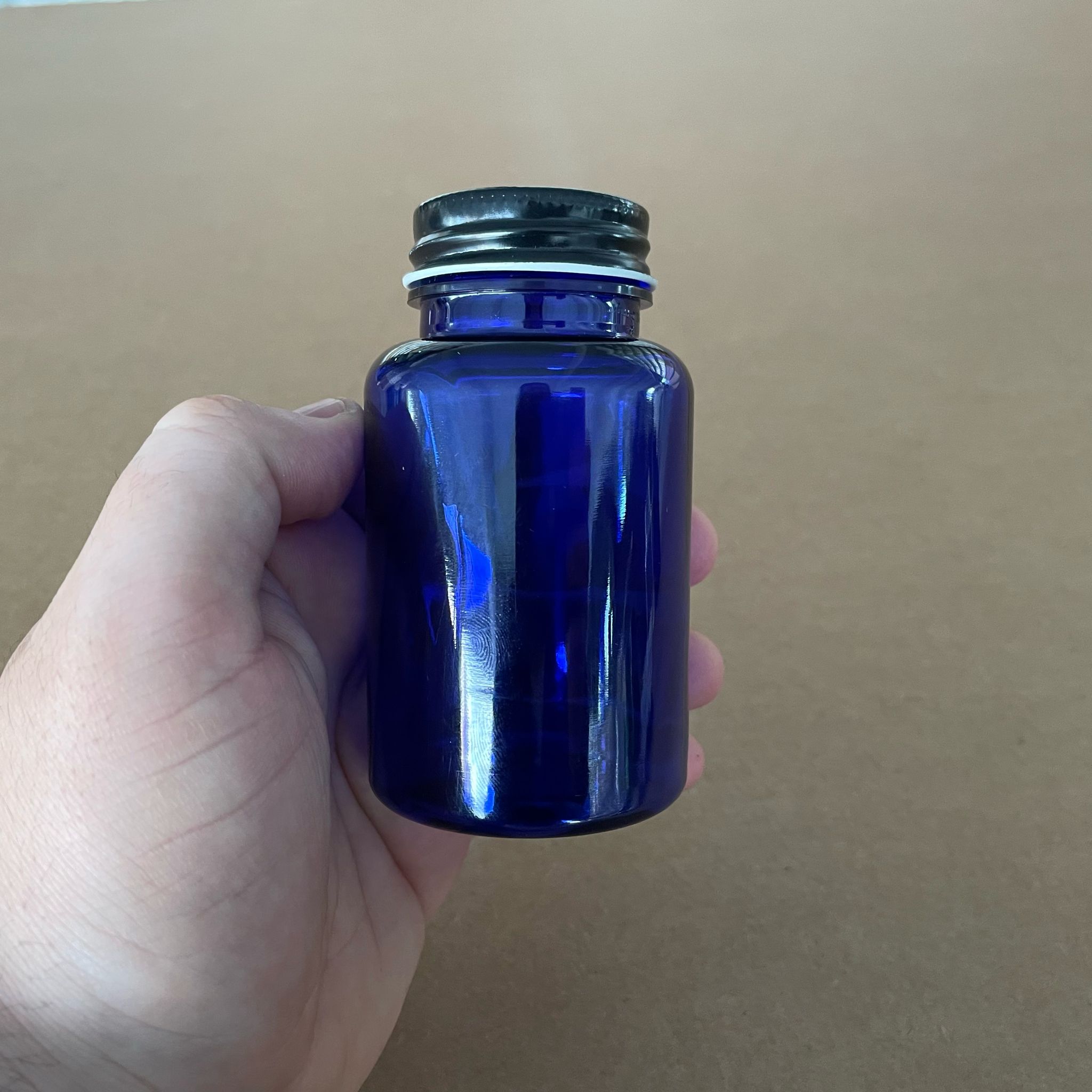 150 CC MAVİ PET TABLET ŞİŞESİ - SİYAH METAL KAPAKLI - 150 ML KAPSÜL KUTUSU - İLAÇ ŞİŞESİ - MEDİKAL HAP ŞİŞESİ - FARMASÖTİK KAVANOZ