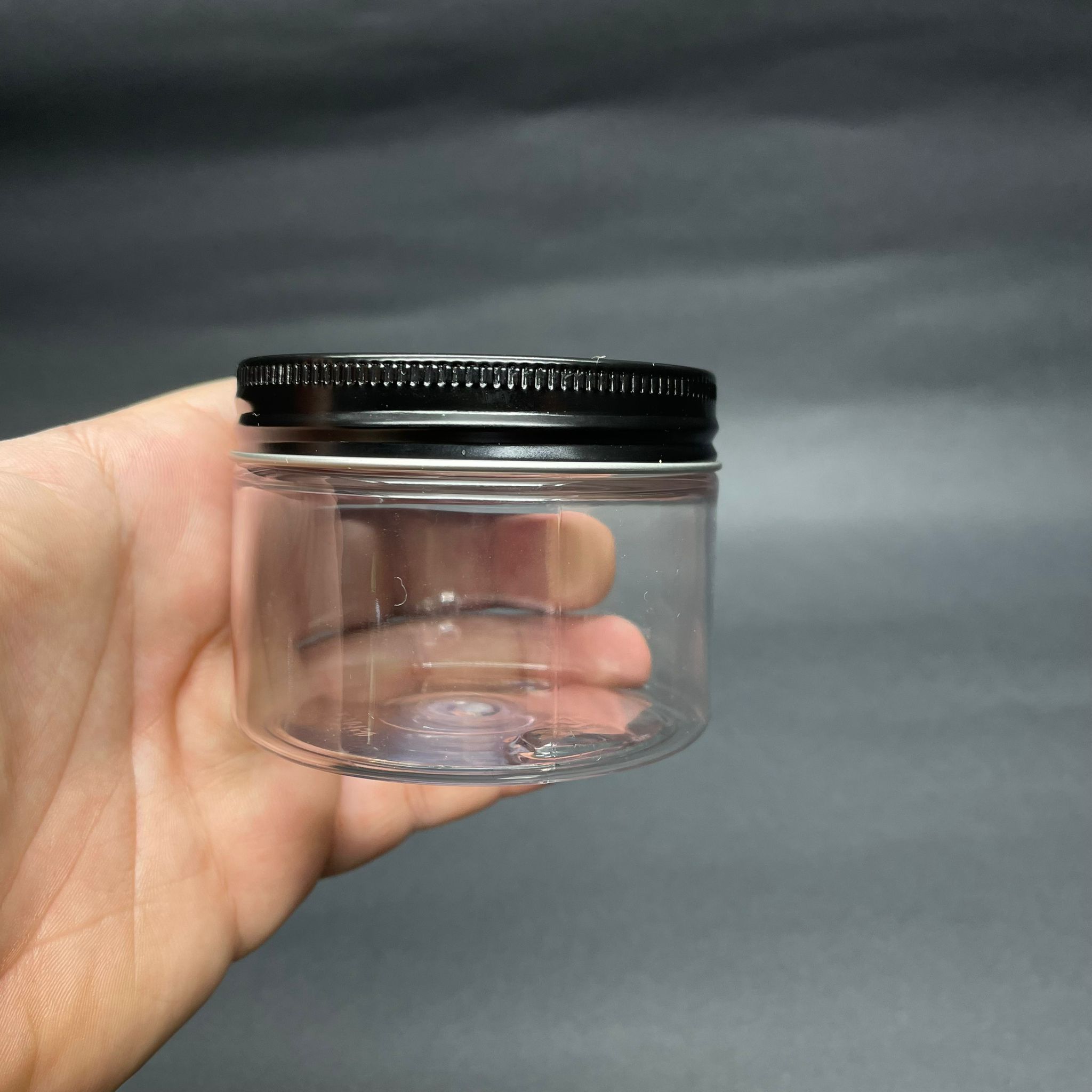 150 CC ŞEFFAF SERT PLASTİK KAVANOZ - SİYAH METAL KAPAKLI - 150 ML METAL KAPAKLI PLASTİK KAVANOZ - KOZMETİK KAVANOZ, GIDA KAVANOZU VE KREM KAVANOZU OLARAK KULLANABİLİRSİNİZ