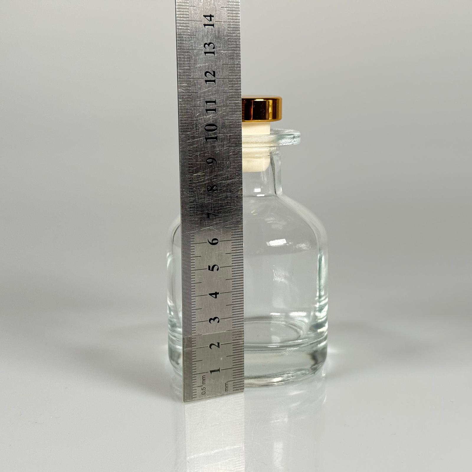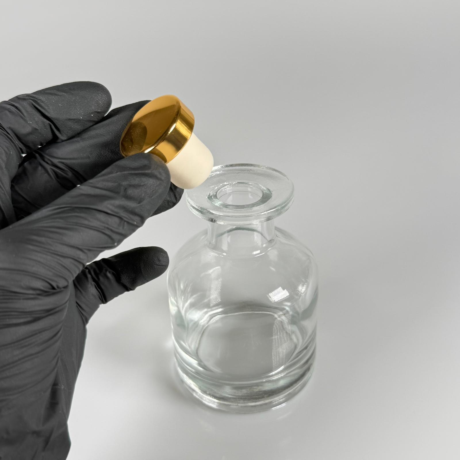 150 CC ŞEFFAF SİLİNDİR BAMBU CAM ESANS ŞİŞESİ - 150 ML KOKU, ESANS, PARFÜMERİ ŞİŞESİ - GOLD MANTAR TIPALI TAKIM