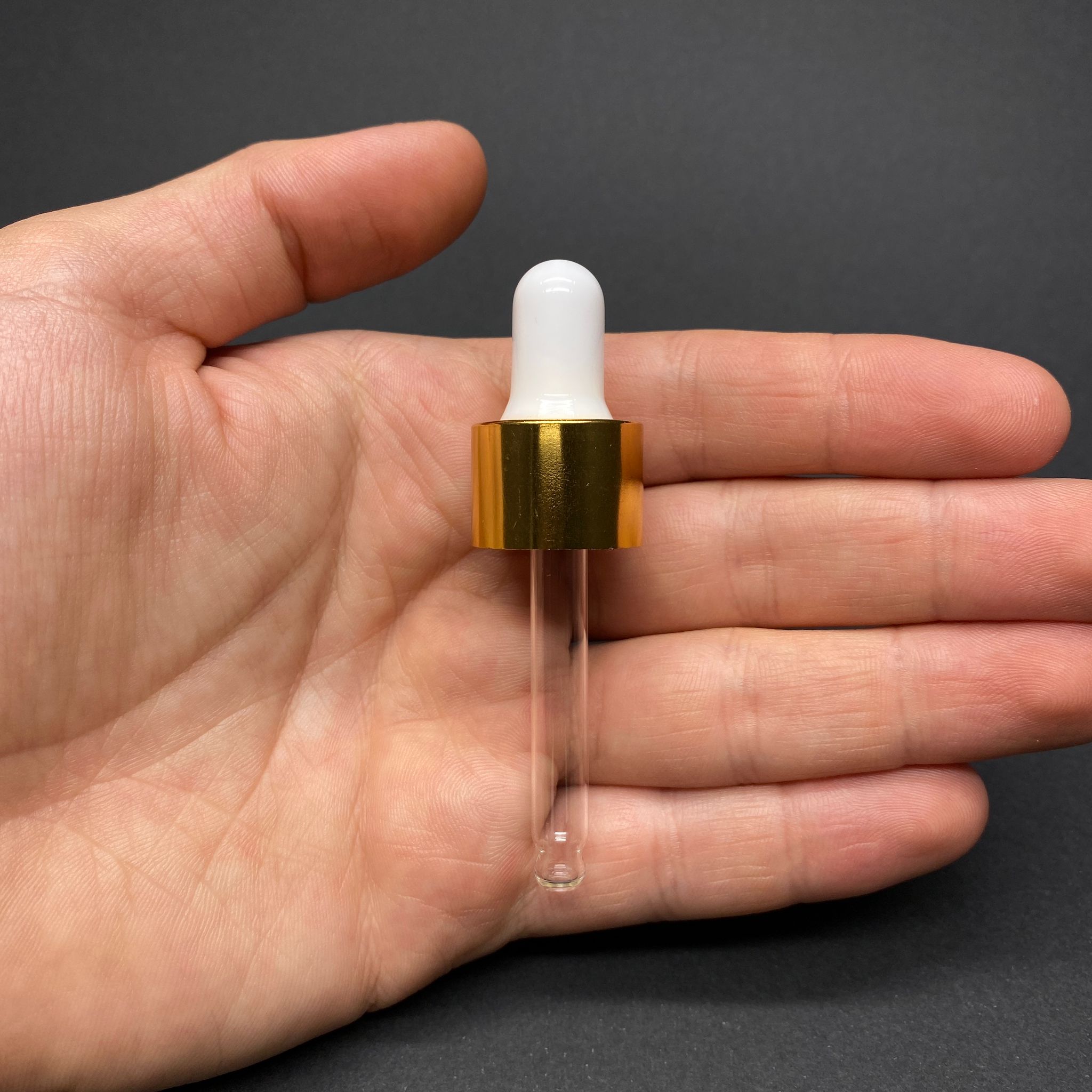18 MM CAM DAMLALIK TAKIM - PARLAK BEYAZ EMZİK+DELİKLİ GOLD METAL KAPAK+CAM PİPET - 10 CC DROPPER ŞİŞELER İÇİN