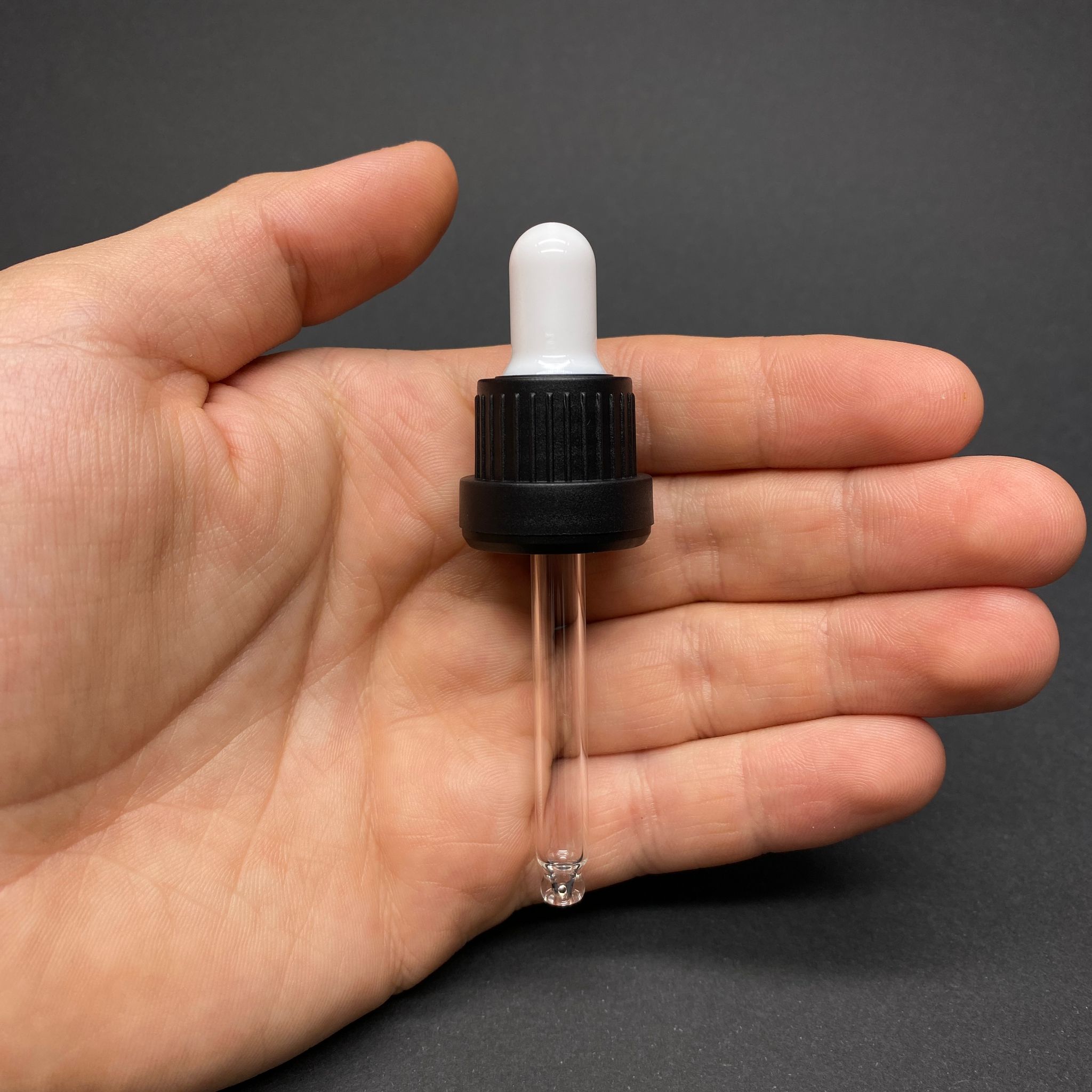 18 MM CAM DAMLALIK TAKIM - PARLAK BEYAZ EMZİK+DELİKLİ SİYAH KİLİTLİ PLASTİK KAPAK+CAM PİPET - 20 CC DROPPER ŞİŞELER İÇİN