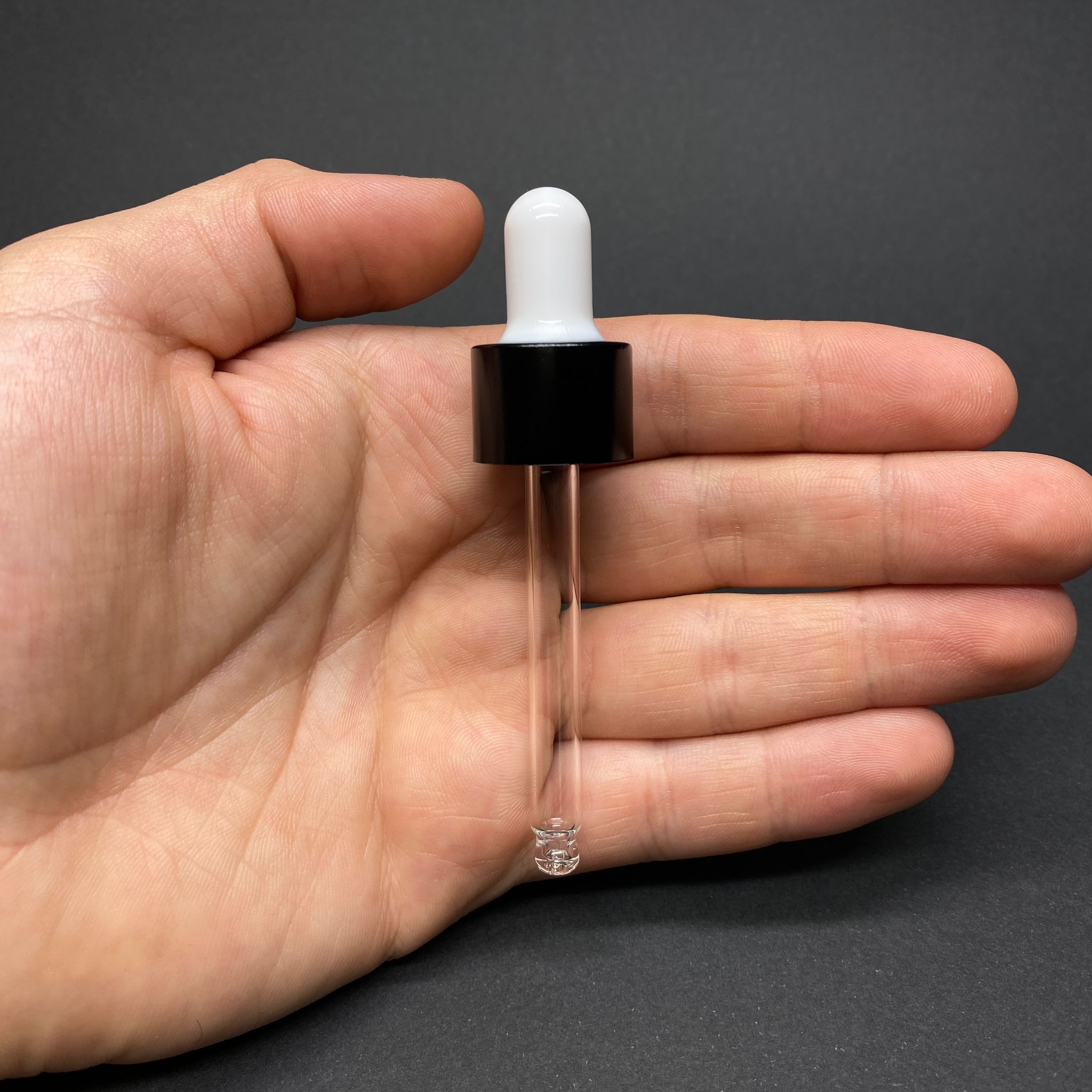 18 MM CAM DAMLALIK TAKIM - PARLAK BEYAZ EMZİK+DELİKLİ SİYAH METAL KAPAK+CAM PİPET - 20 CC DROPPER ŞİŞELER İÇİN