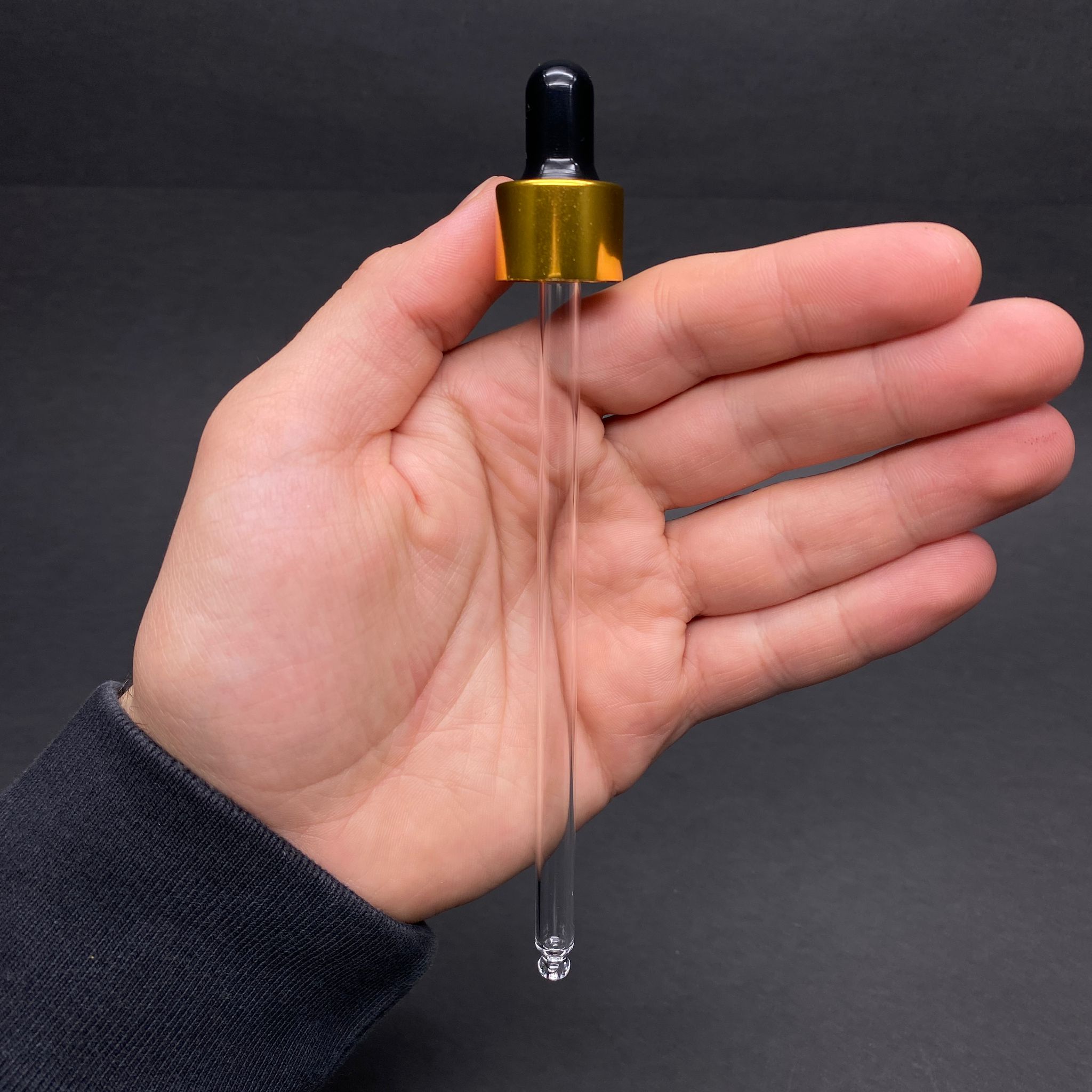 18 MM CAM DAMLALIK TAKIM - PARLAK SİYAH EMZİK+DELİKLİ GOLD METAL KAPAK+CAM PİPET - TAKILACAĞI ŞİŞE EN AZ 14 CM OLMALI