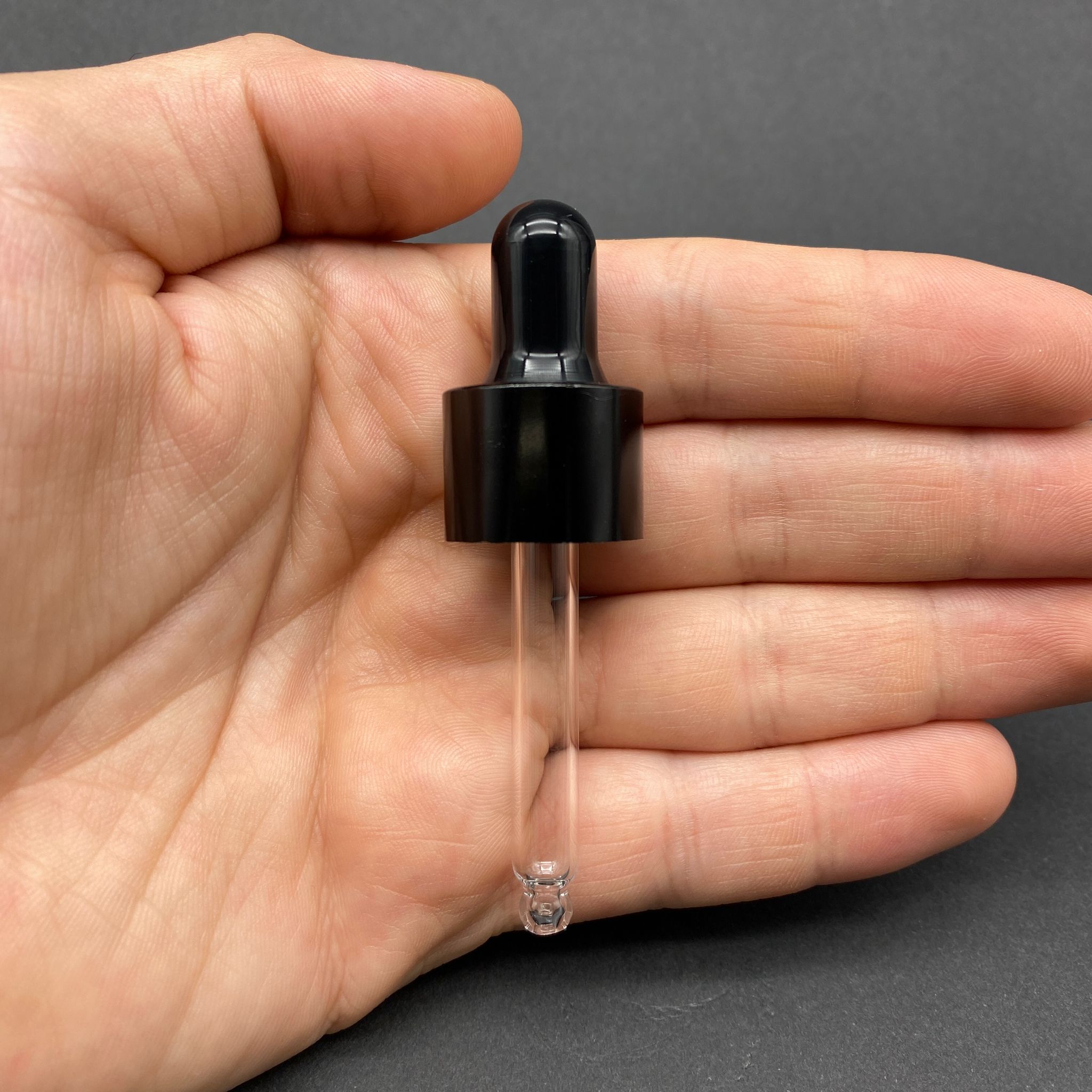18 MM CAM DAMLALIK TAKIM - PARLAK SİYAH EMZİK+DELİKLİ SİYAH METAL KAPAK+CAM PİPET - 10 CC DROPPER ŞİŞELER İÇİN