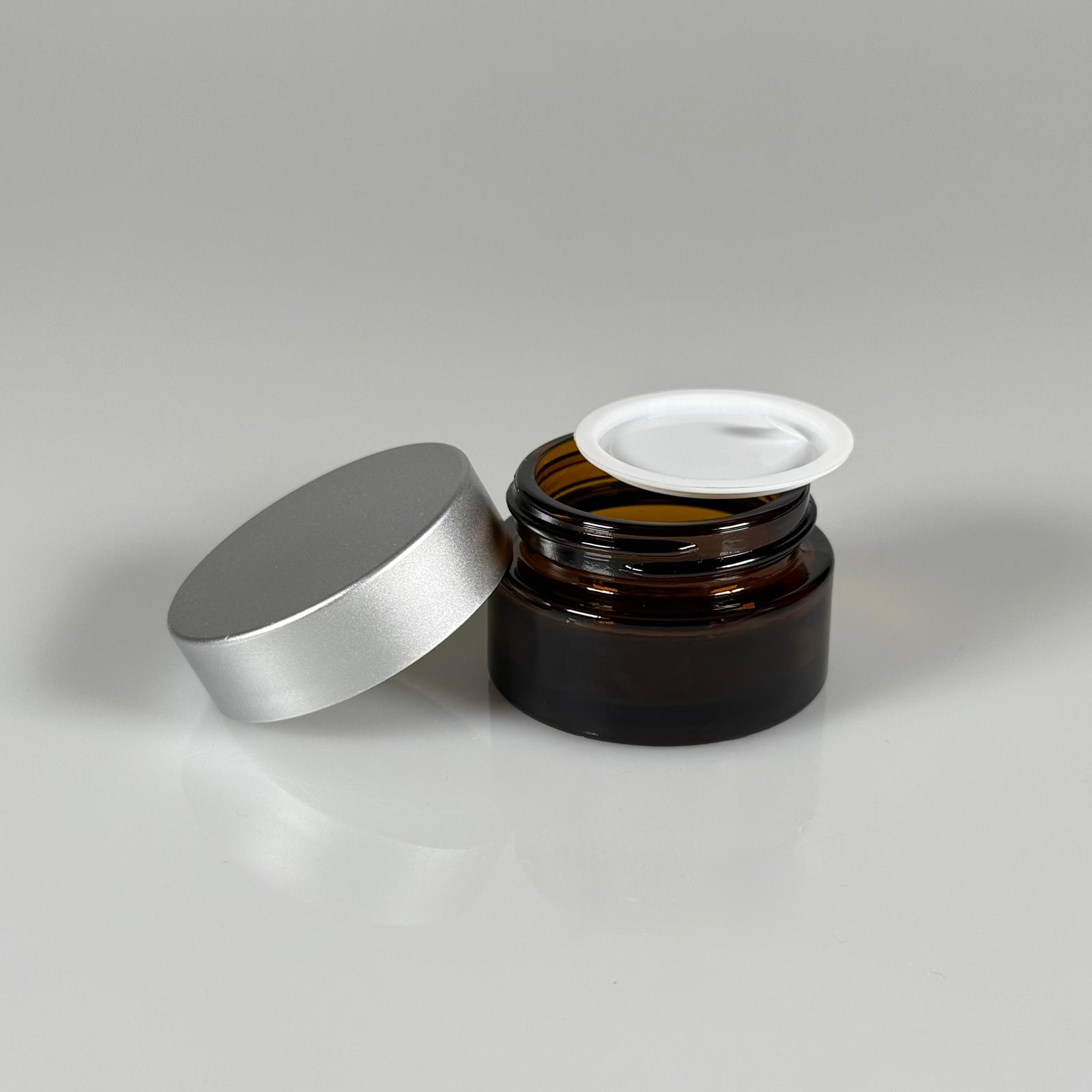 20 CC CAM AMBER KREM KAVANOZU - GÜMÜŞ KAPAKLI İÇ CONTALI - 20 ML KAHVERENGİ KREM KAVANOZU - AMBER MUM KAVANOZU