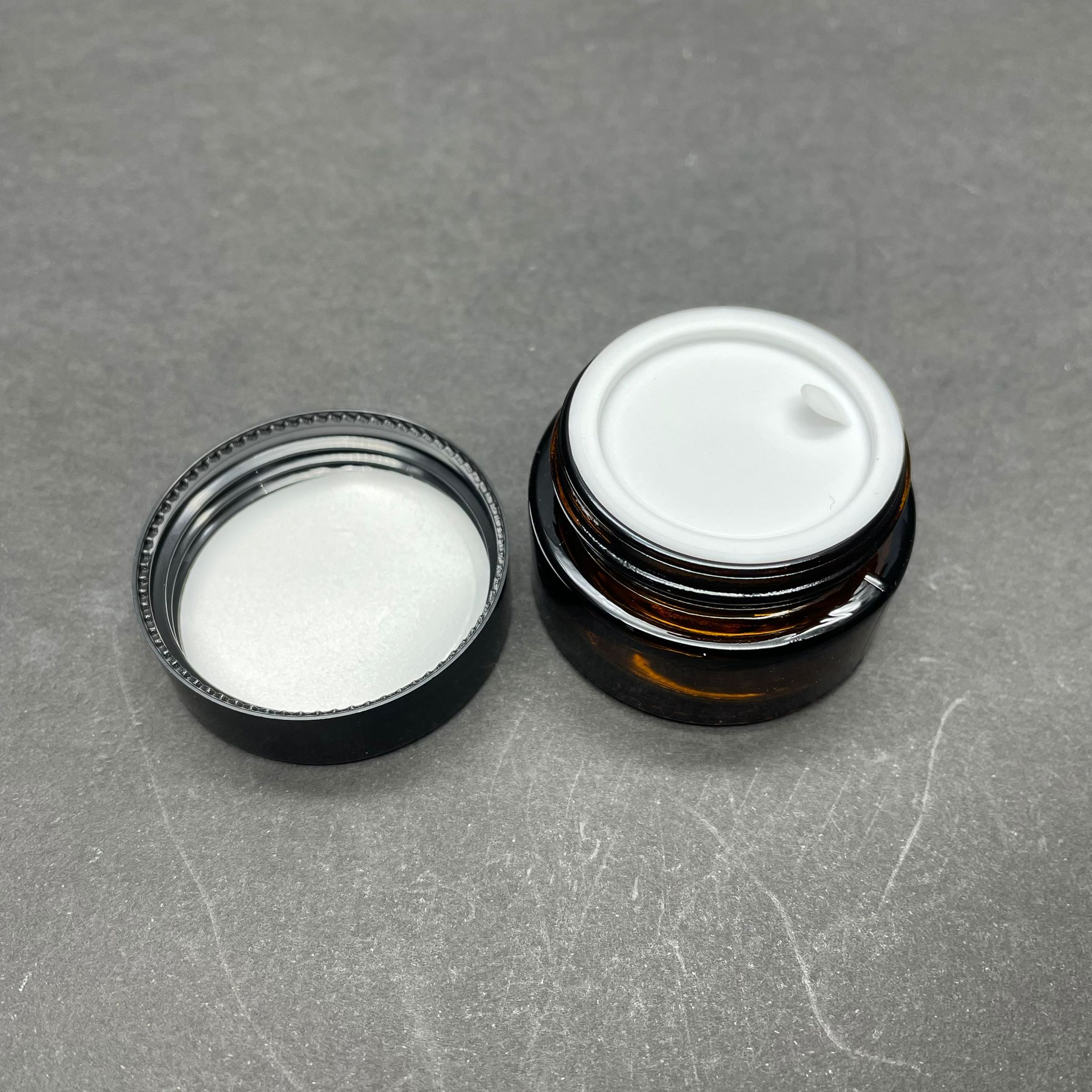 -AMBER KAVANOZ, SİYAH KAPAKLI VE İÇ CONTALI OLARAK GÖNDERİLİR. SİYAH KAPAĞIN ALTINDA AYRICA SIZDIRMAMASI İÇİN KÖPÜK CONTA BULUNUR.