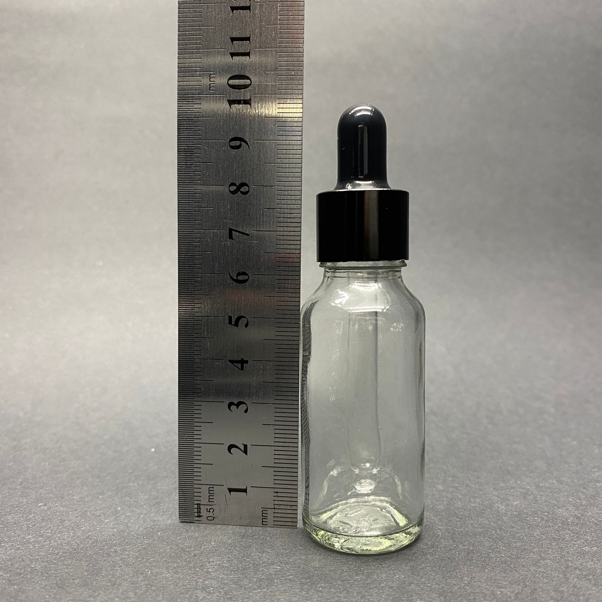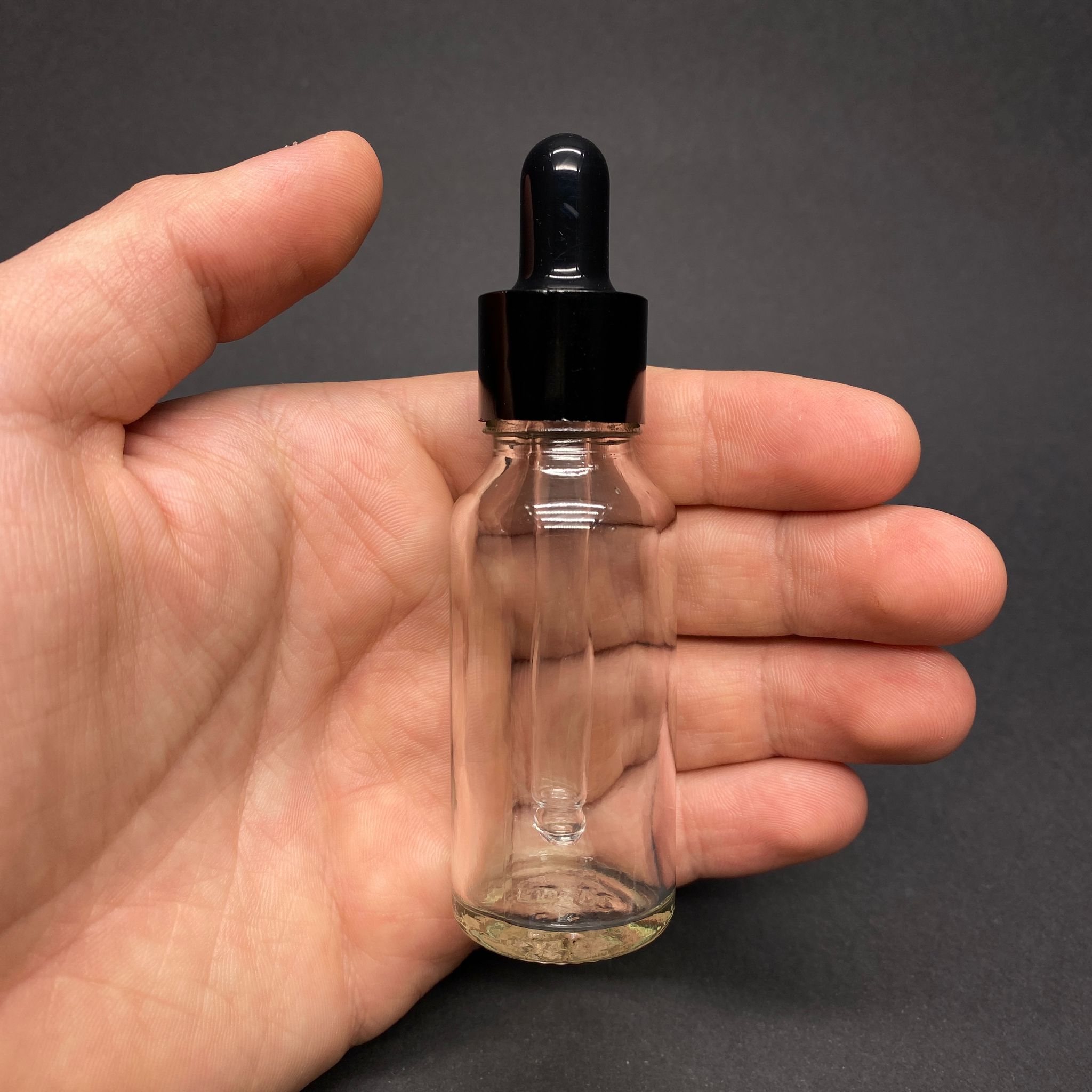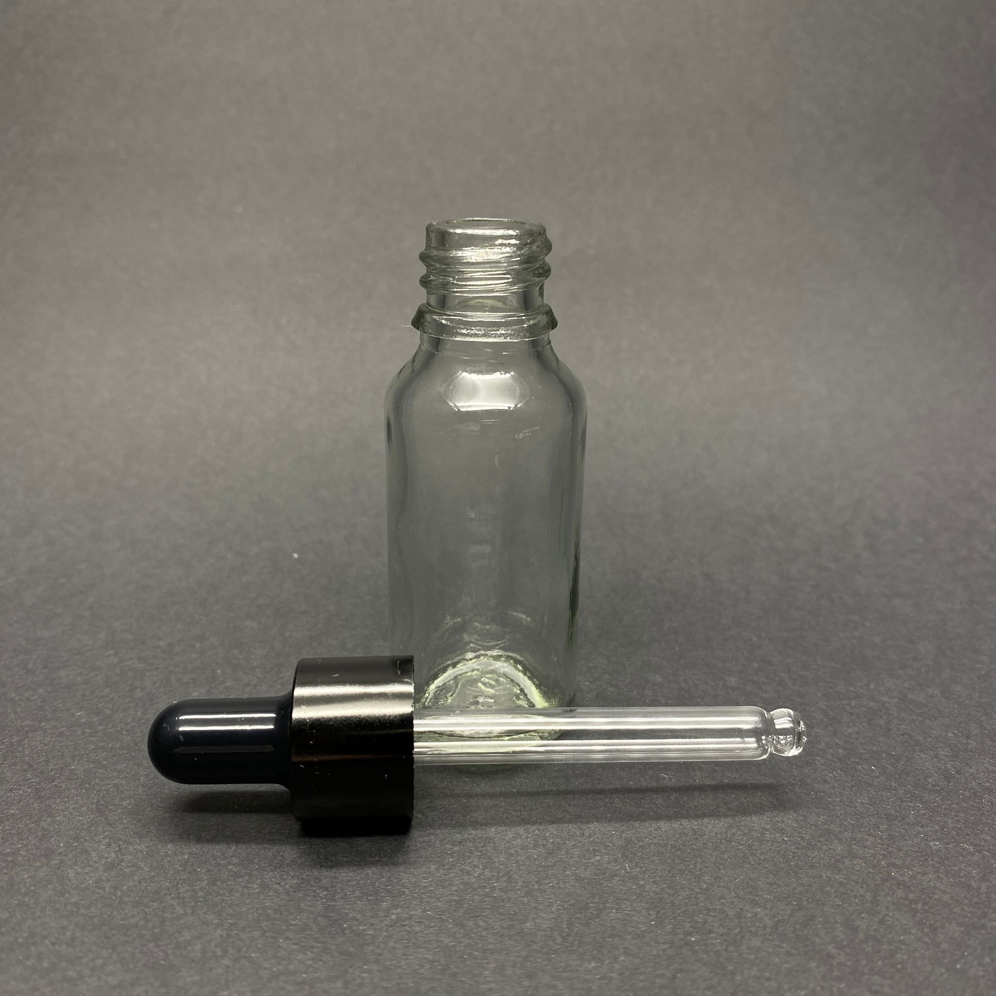 20 CC ŞEFFAF CAM DAMLALIKLI ŞİŞE - SİYAH EMZİK - SİYAH METALİK KAPAK - 20 ML SAYDAM CAM DAMLALIKLI ŞİŞE