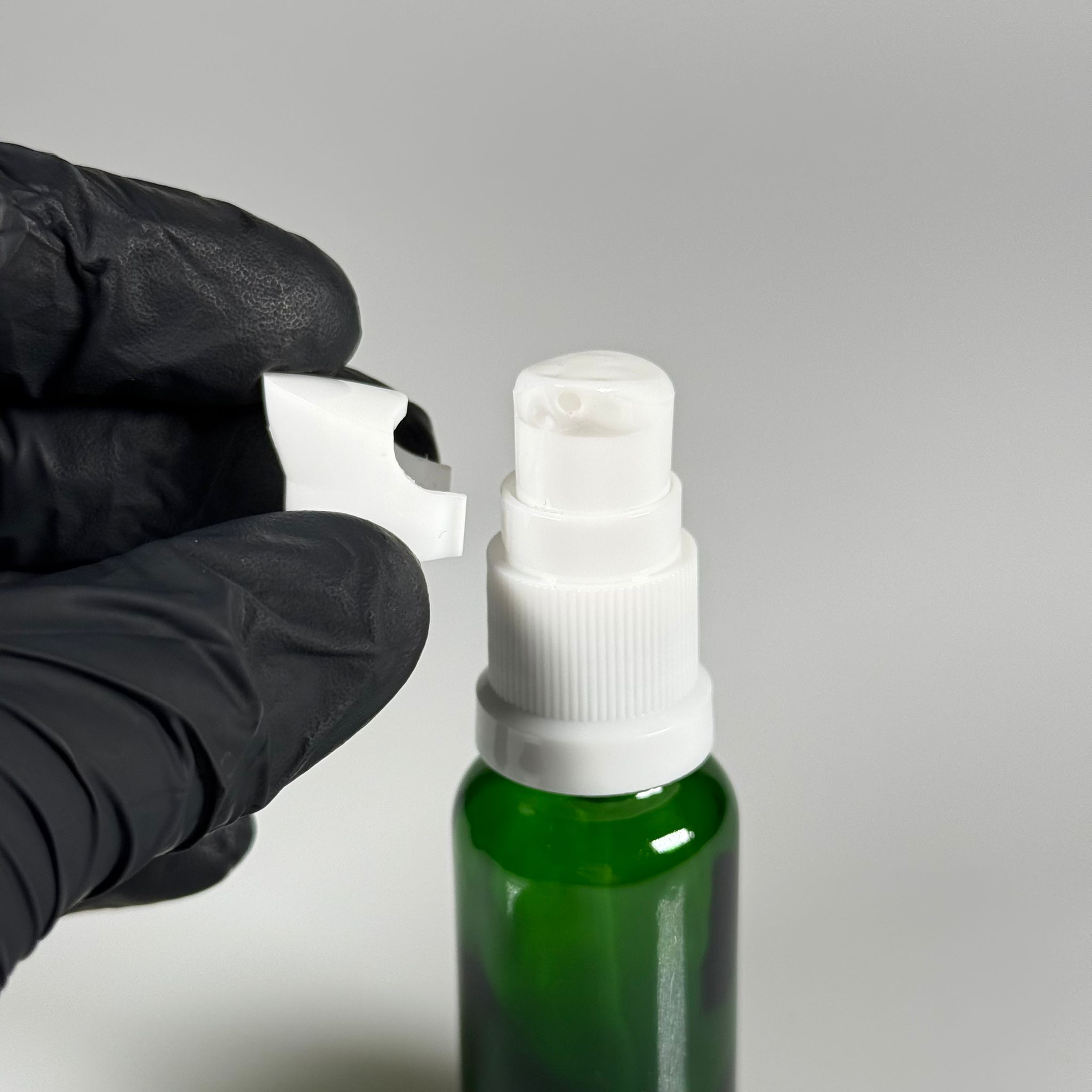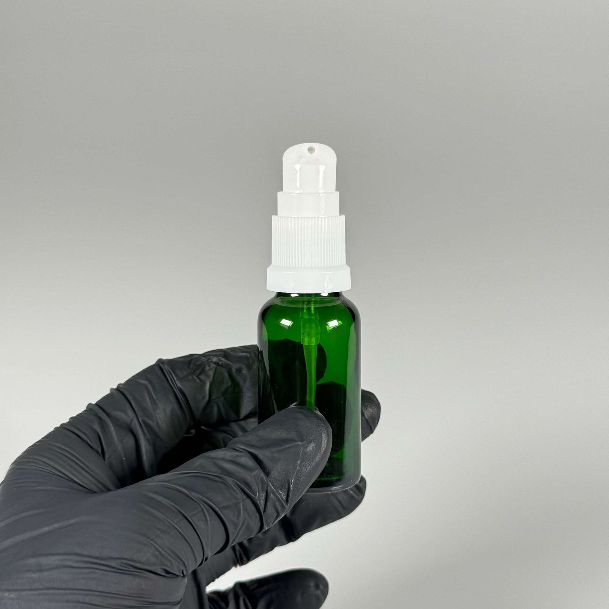 20 CC YEŞİL CAM ŞİŞE - SIZDIRMAZ ETEKLİ BEYAZ LOSYON POMPALI TAKIM - 20 ML LOSYON ŞİŞESİ - YAĞ, KREM GİBİ YOĞUN KIVAMLI SIVILAR İÇİN CAM AMBALAJ