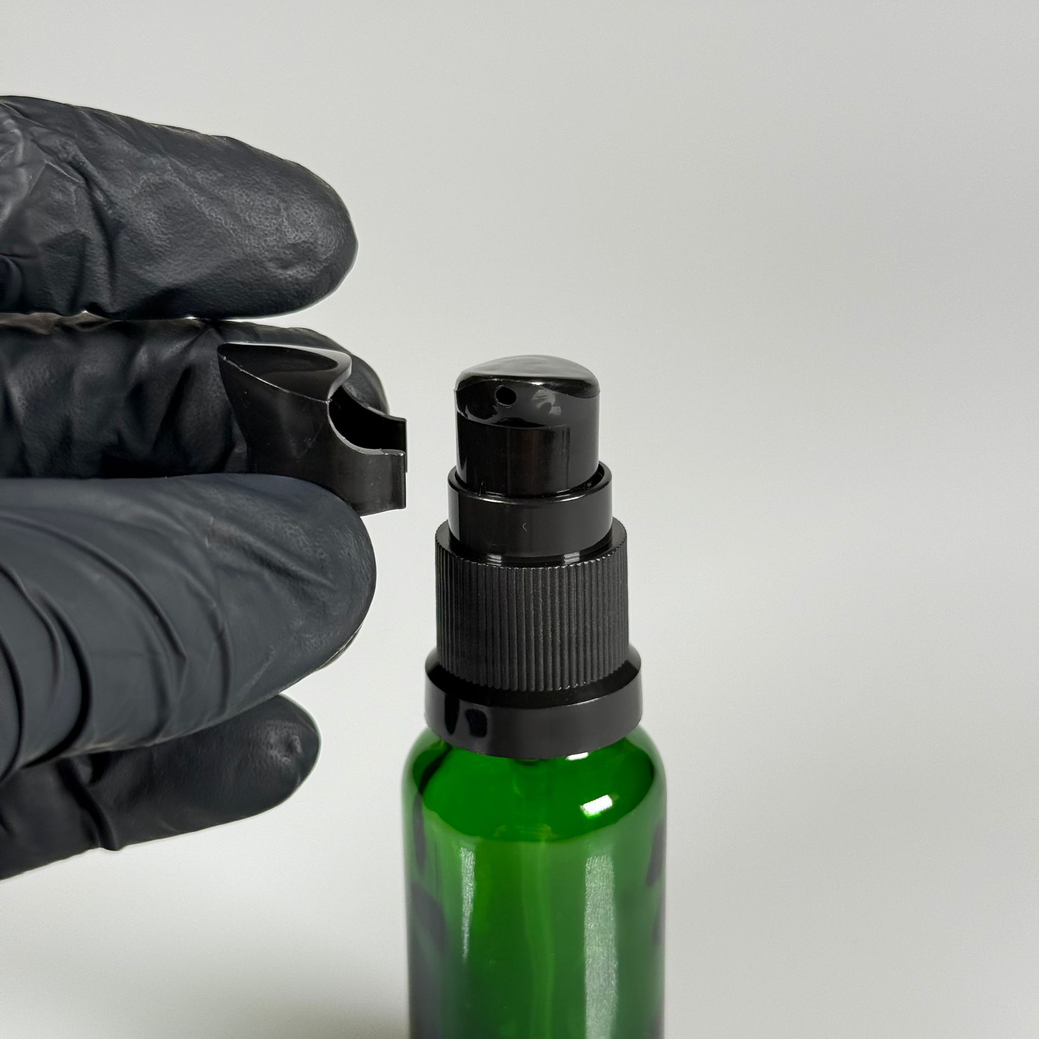 20 CC YEŞİL CAM ŞİŞE - SIZDIRMAZ ETEKLİ SİYAH LOSYON POMPALI TAKIM - 20 ML LOSYON ŞİŞESİ - YAĞ, KREM GİBİ YOĞUN KIVAMLI SIVILAR İÇİN CAM AMBALAJ