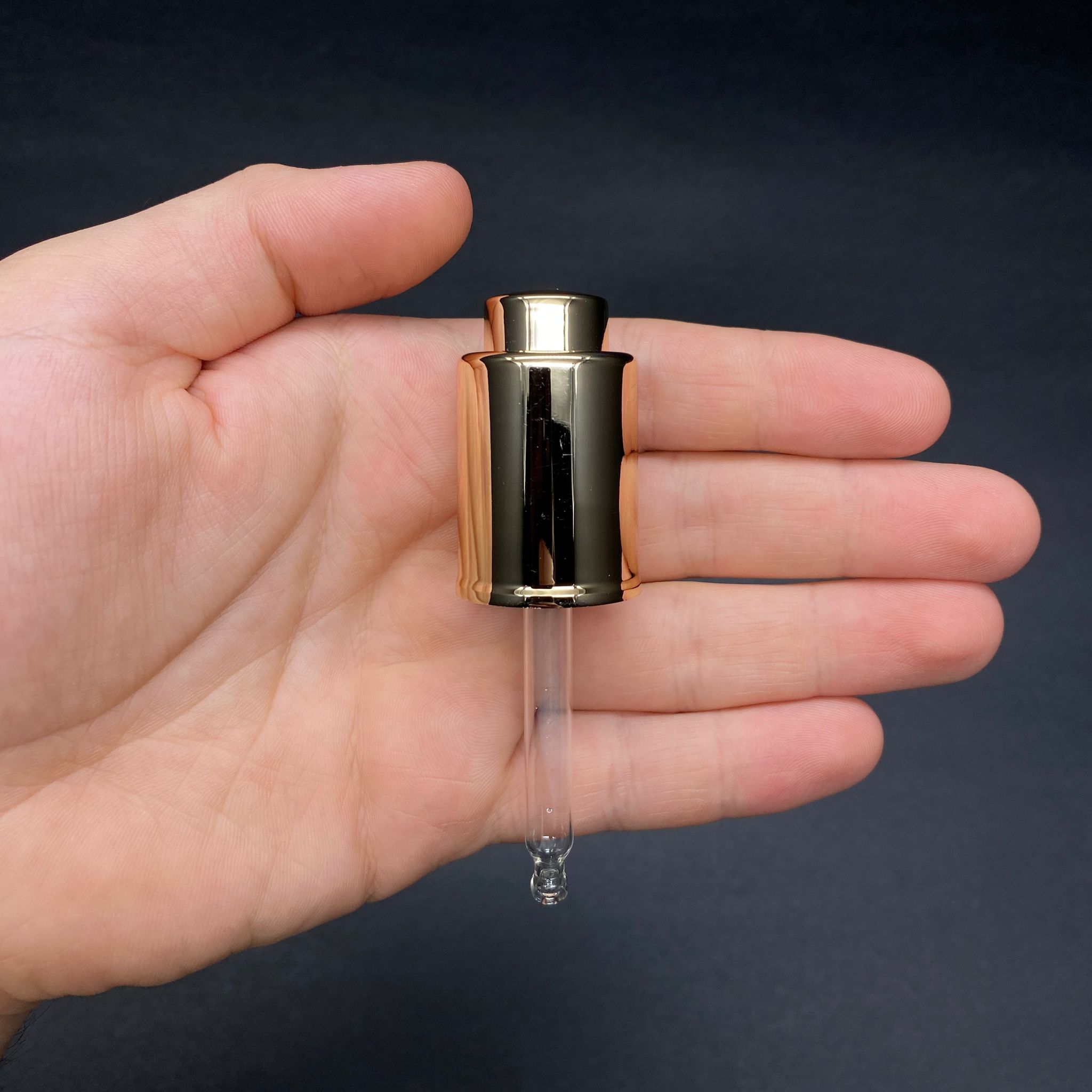 20 MM CAM DAMLALIK TAKIM - BASMALI GOLD DAMLALIK (İÇİ KÖPÜK CONTALI) + 65 MM CAM PİPET - 30 CC OMUZLU SERUM ŞİŞESİ İÇİN