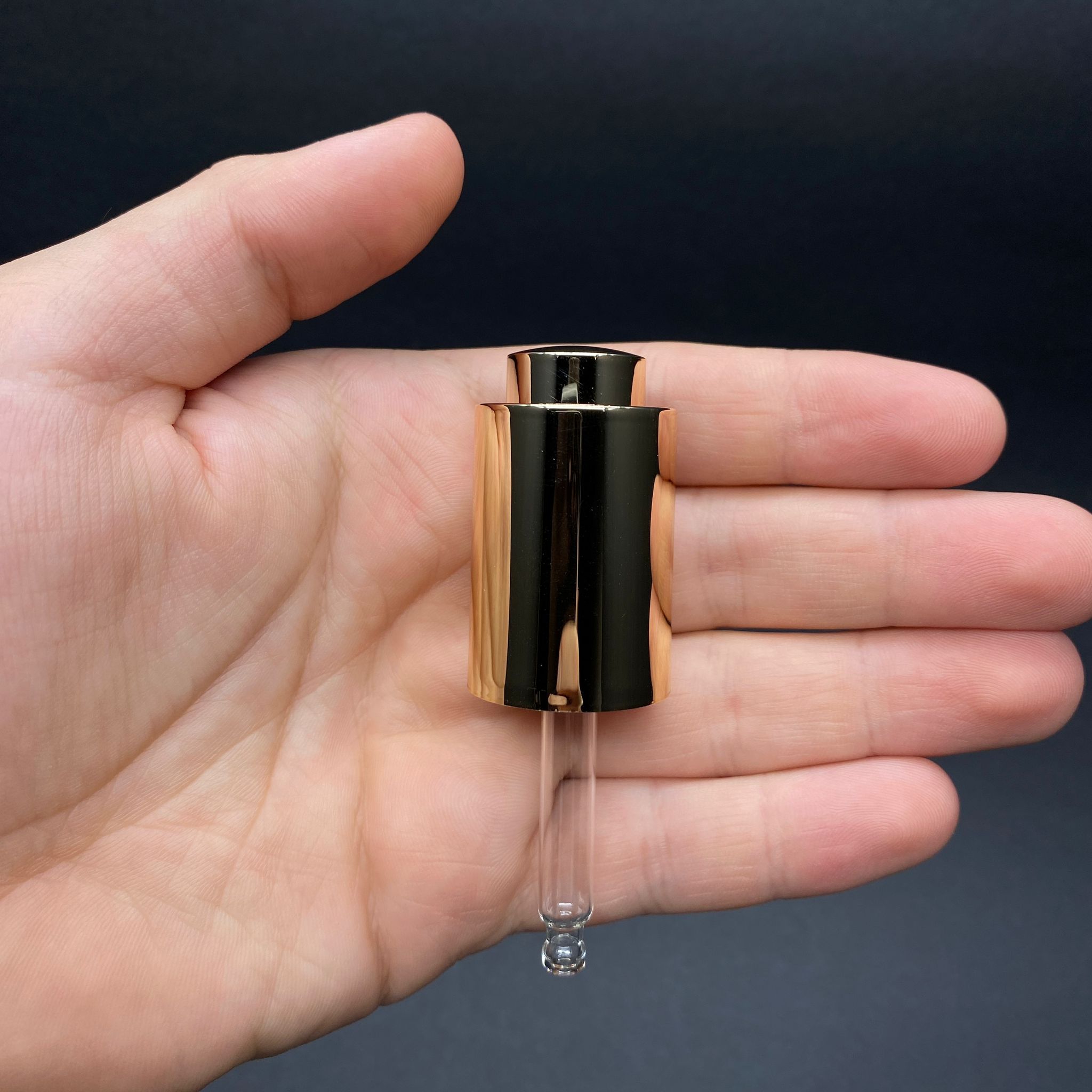 20 MM CAM DAMLALIK TAKIM - BYORE MODEL (ÇEVİRİNCE BASMA BUTONU ÇIKAR) BASMALI GOLD DAMLALIK (İÇİ KÖPÜK CONTALI) + 65 MM CAM PİPET - 30 CC OMUZLU SERUM ŞİŞESİ İÇİN
