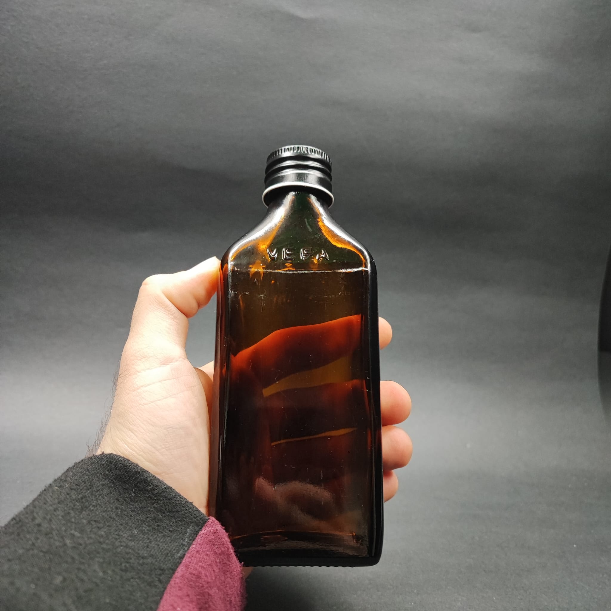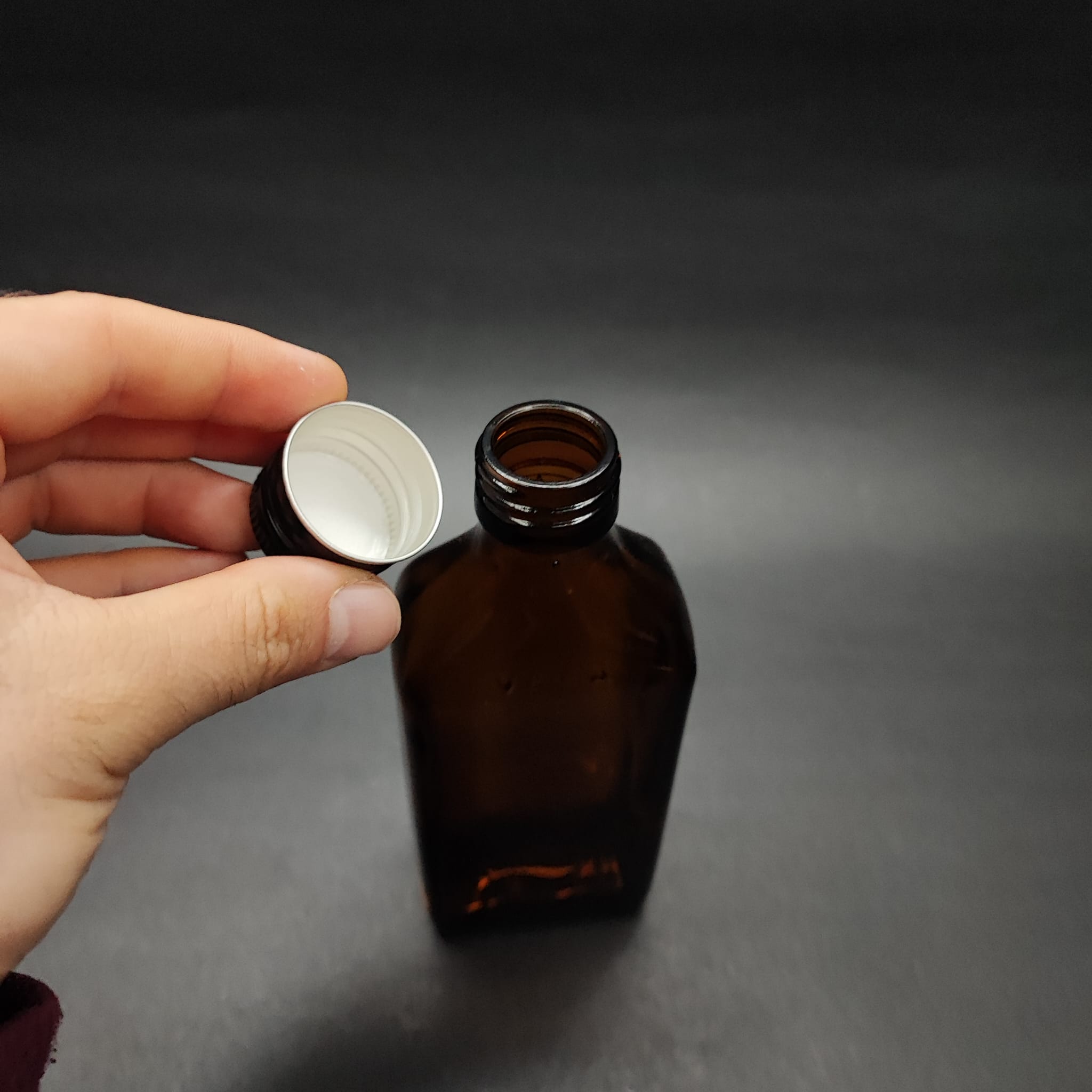 200 CC AMBER YASSI CAM ŞİŞE - CONTALI SİYAH METAL KAPAKLI - 200 ML YASSI COLD BREW CAM ŞİŞE (ÜSTÜ YAZILI)