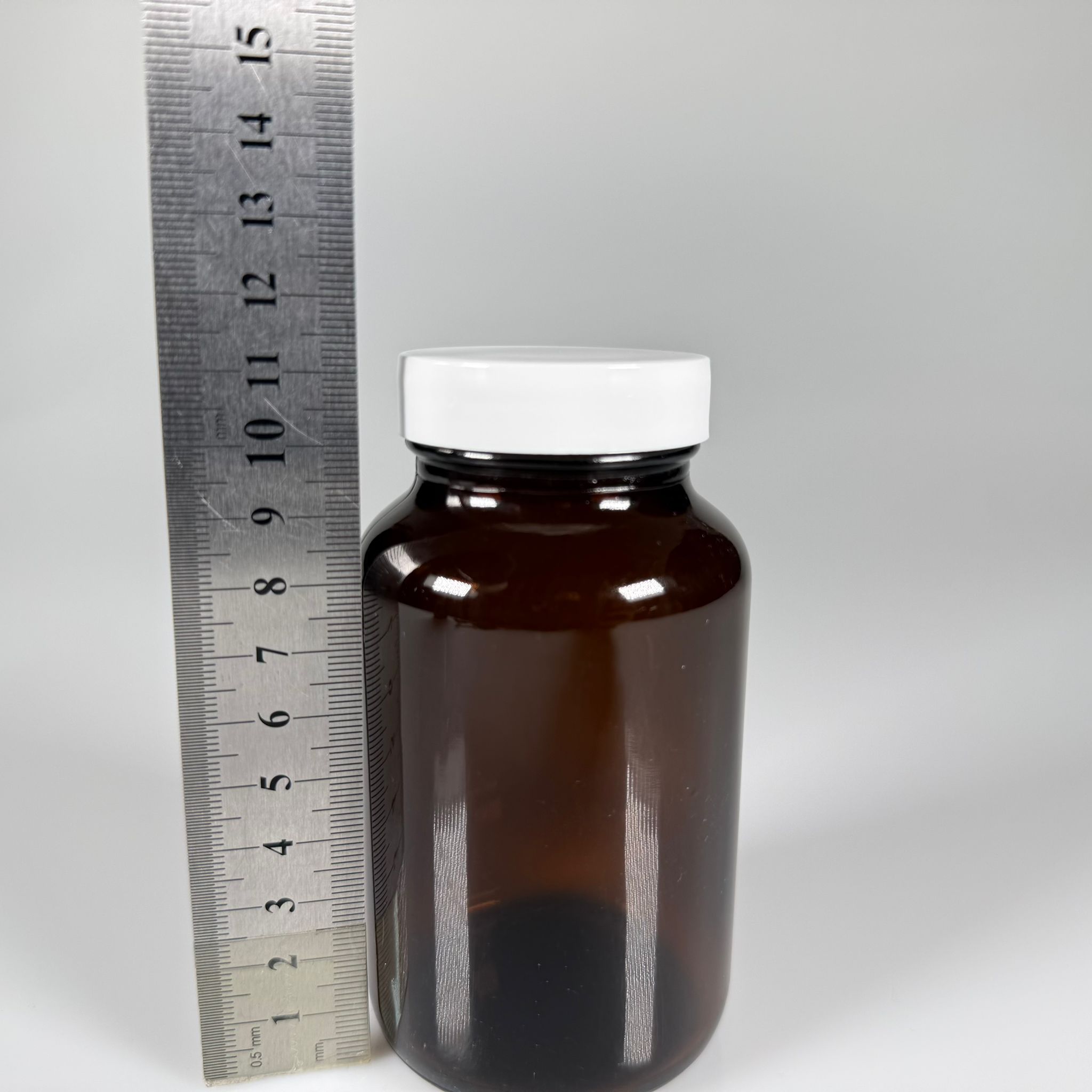 200 CC CAM KAHVERENGİ AMBER TABLET KAPSÜL ŞİŞESİ + 45 MM VİDALI BEYAZ PLASTİK KAPAK + KENDİNDEN YAPIŞKANLI KÖPÜK CONTA