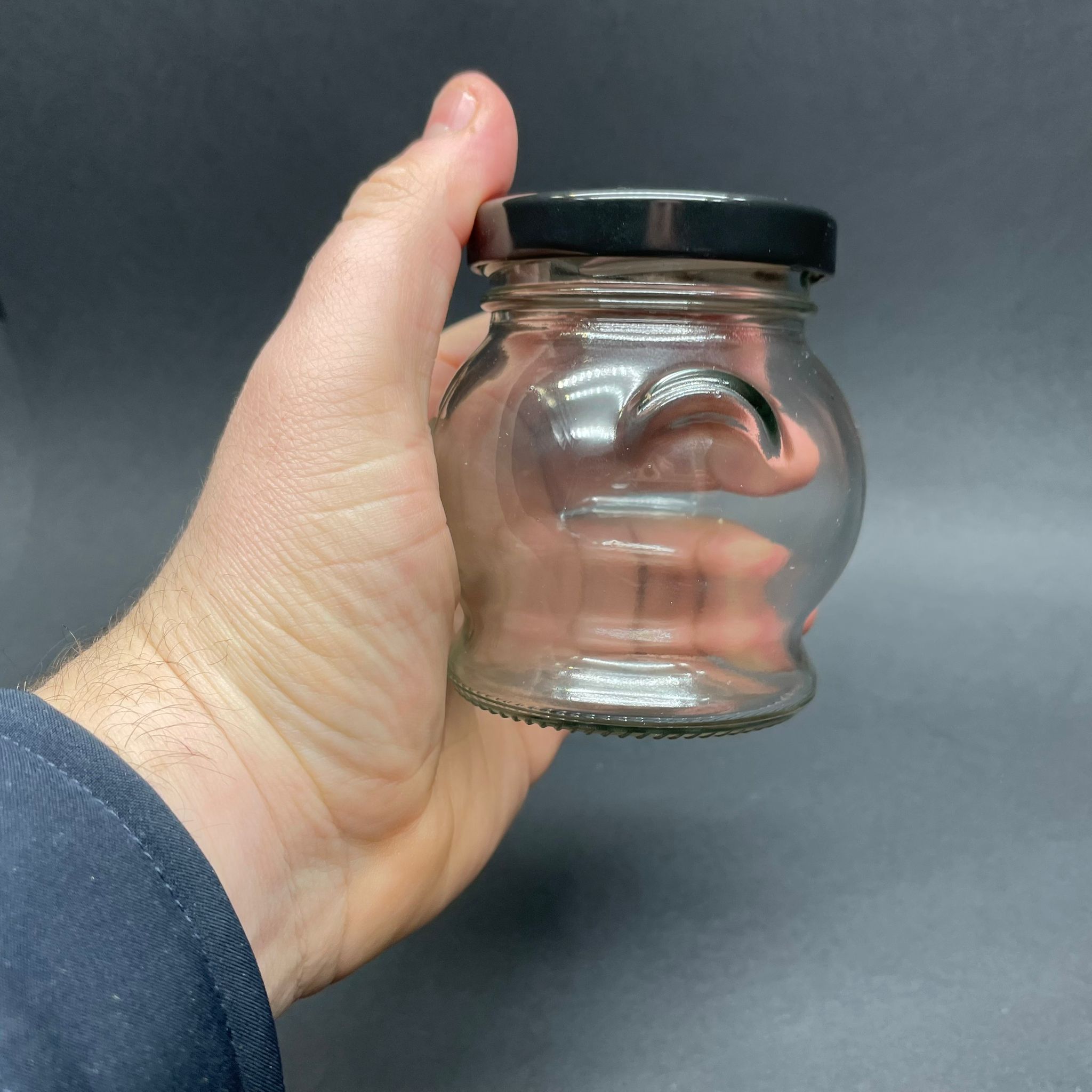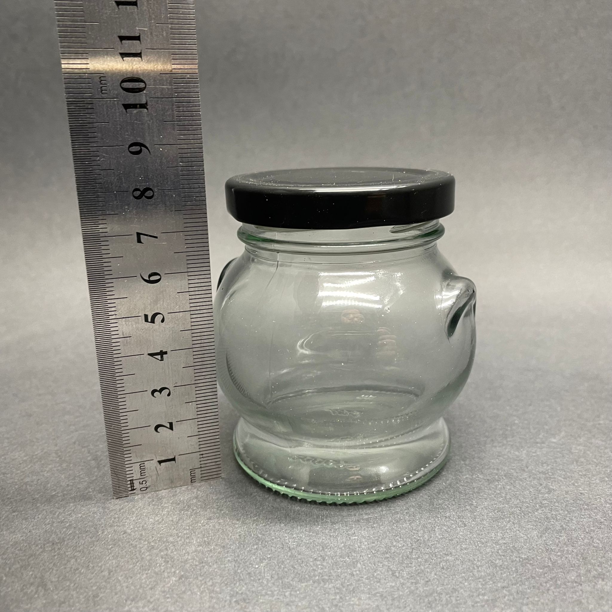 200 CC KULPLU TOMBUL CAM KAVANOZ- SİYAH METAL KAPAKLI - 200 ML KÜRE KAVANOZ