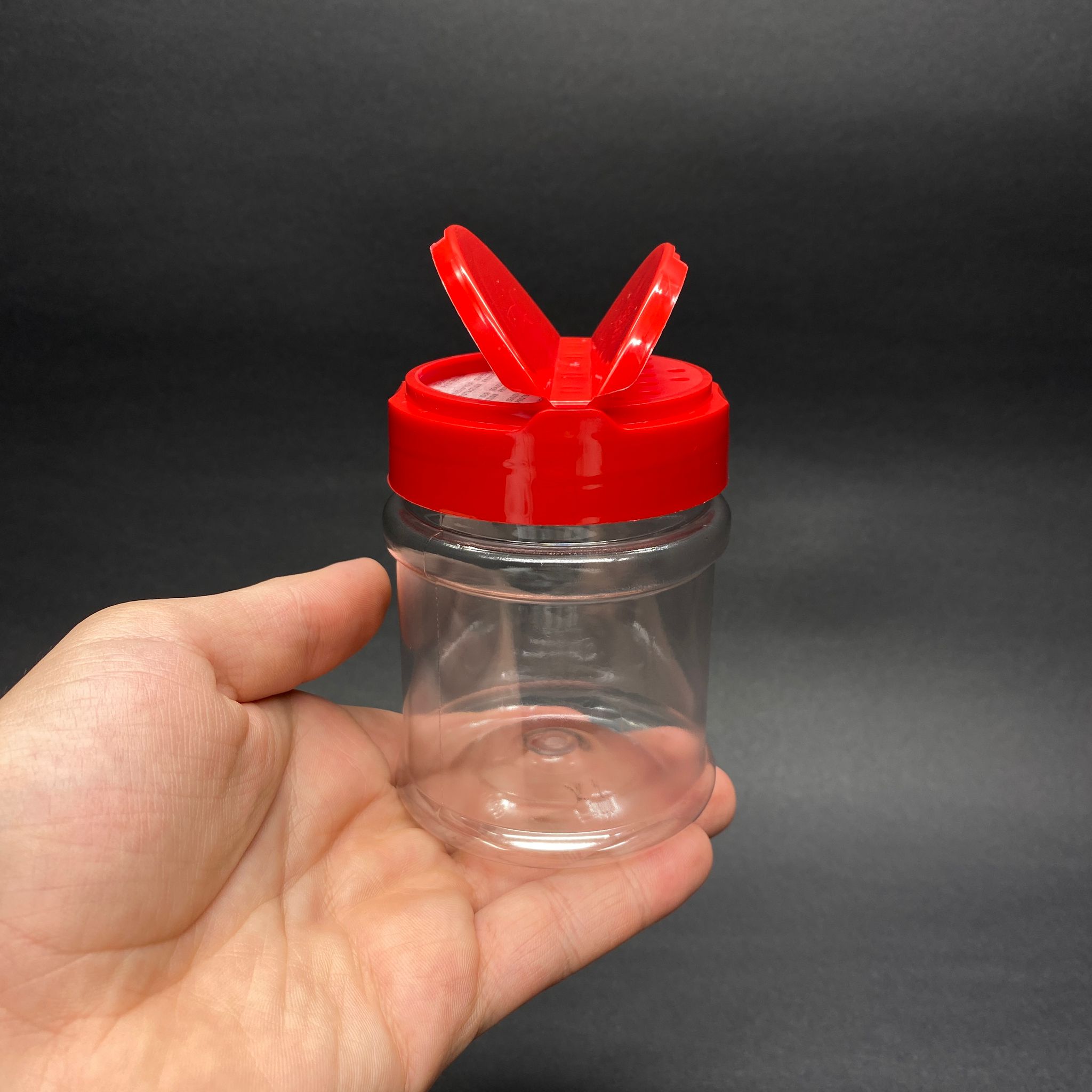 200 CC PET BAHARAT KAVANOZU - KIRMIZI FLİPTOP BAHARAT KAPAKLI + SIZDIRMAZ KENDİNDEN YAPIŞKANLI KÖPÜK CONTALI - toz kavanozu , baharat ambalajı , boş pudra şişesi . tuzluk , baharat düzenleyici set için kavanoz