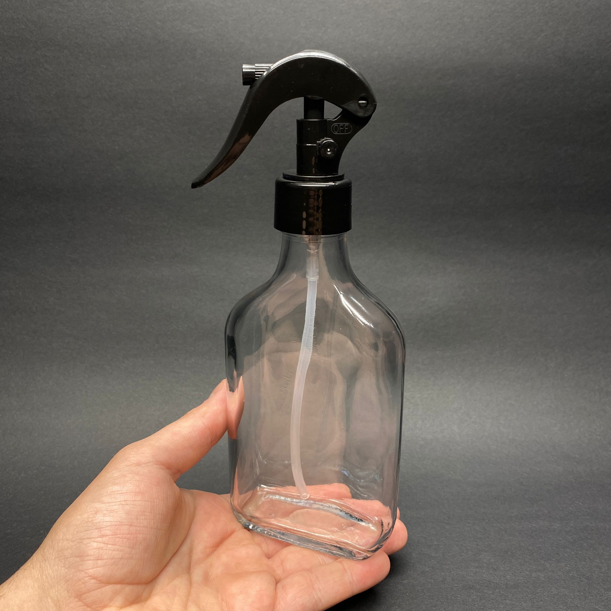 200 CC YASSI CAM ŞİŞE - SİYAH TRİGER SPREYLİ (DUMAN PÜSTÜRTÜR) - 200 ML TEMİZLİK , ODA PARFÜMÜ , CAMSİL VB İÇİN YASSI CAM ŞİŞE