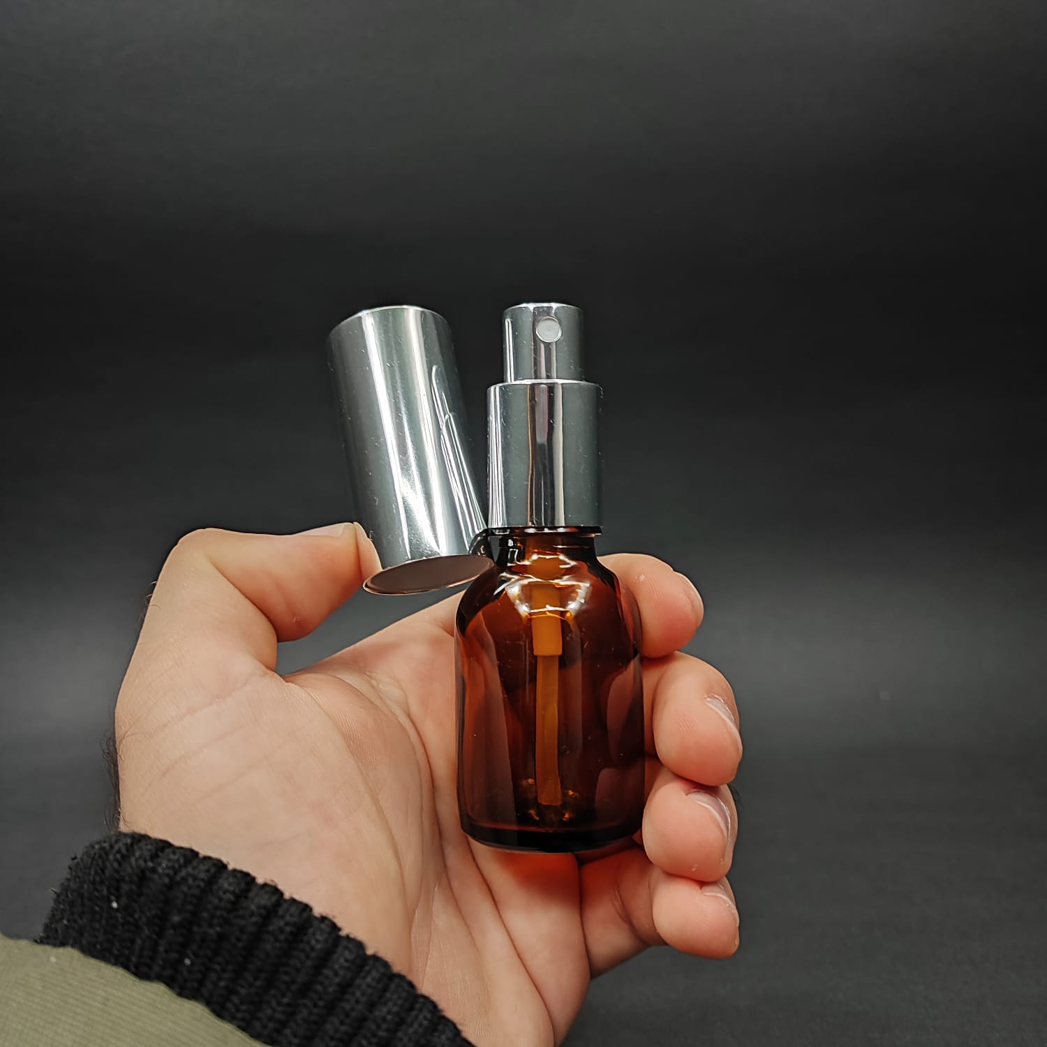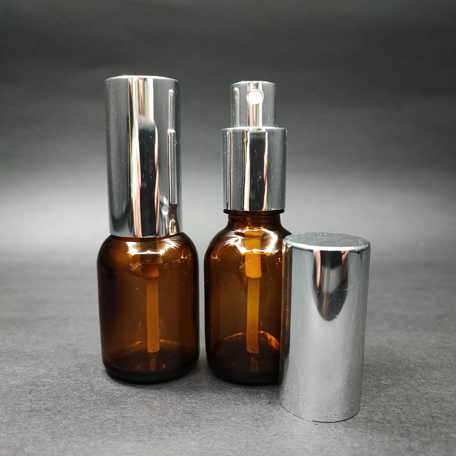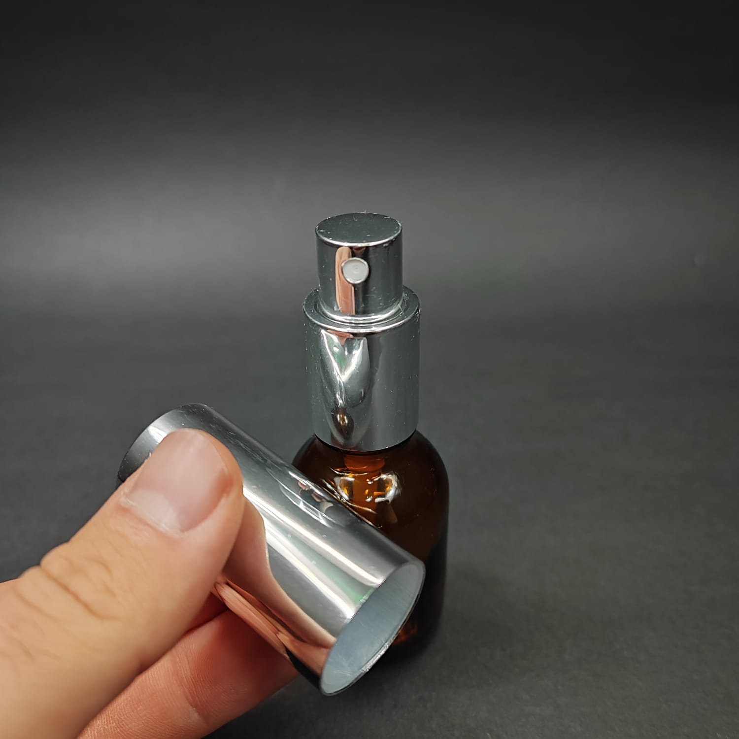 25 ML LÜKS VİDALI VALF ÇEVİRME PARFÜM ŞİŞELERİ - 25 CC TOMBUL AMBER CAM ŞİŞE - GÜMÜŞ METAL SPREYLİ KAPAKLI SET