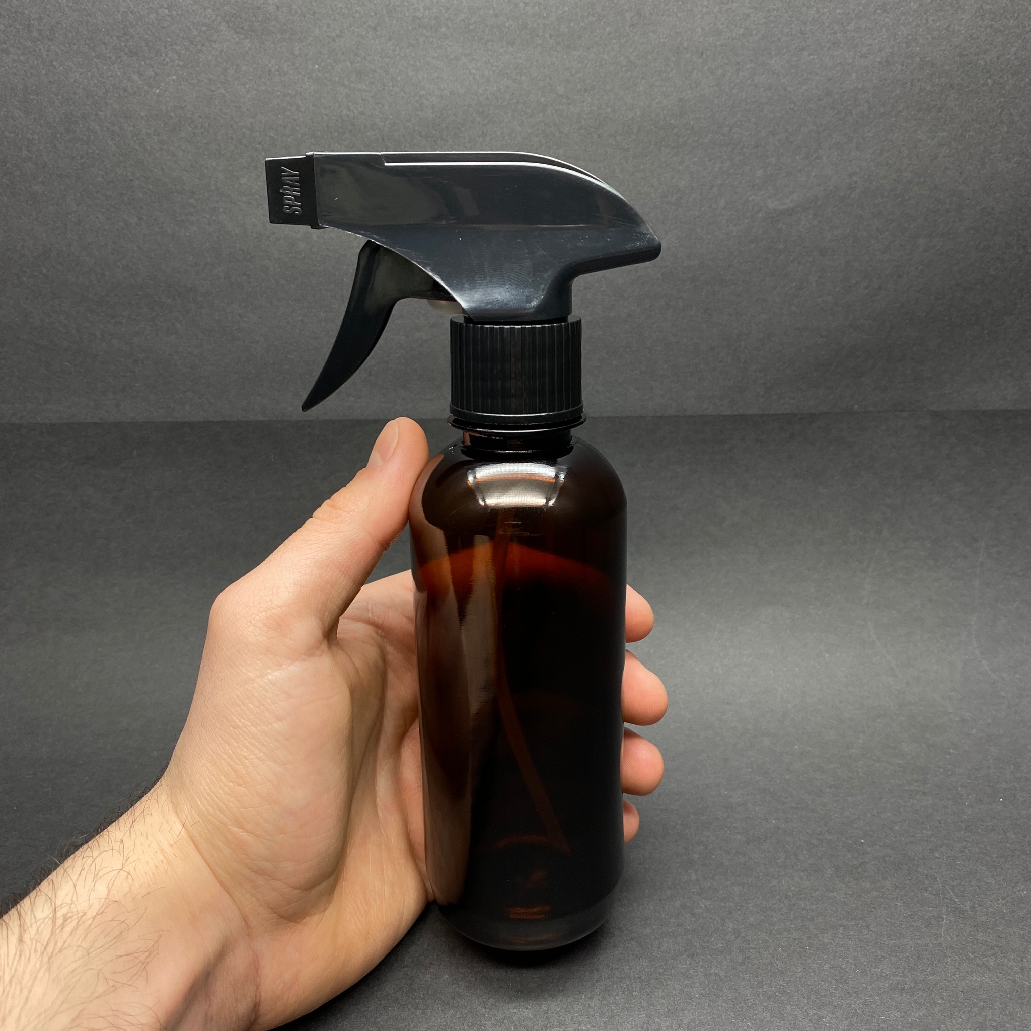 250 CC AMBER SERT PLASTİK ŞİŞE - SİYAH TETİK SPREYLİ - UZUN MODEL - 250 ML KAHVERENGİ SPREYLİ PET ŞİŞE